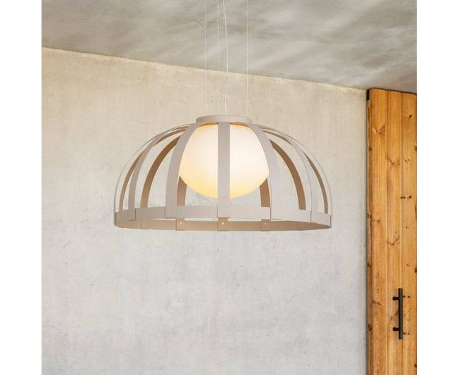 Подвесная лампа Estiluz BOLS с пластиковым абажуром и встроенным регулируемым светодиодом. Обработка порошковой краской с двойным покрытием чрезвычайно устойчива к коррозии и другим условиям окружвющей среды.