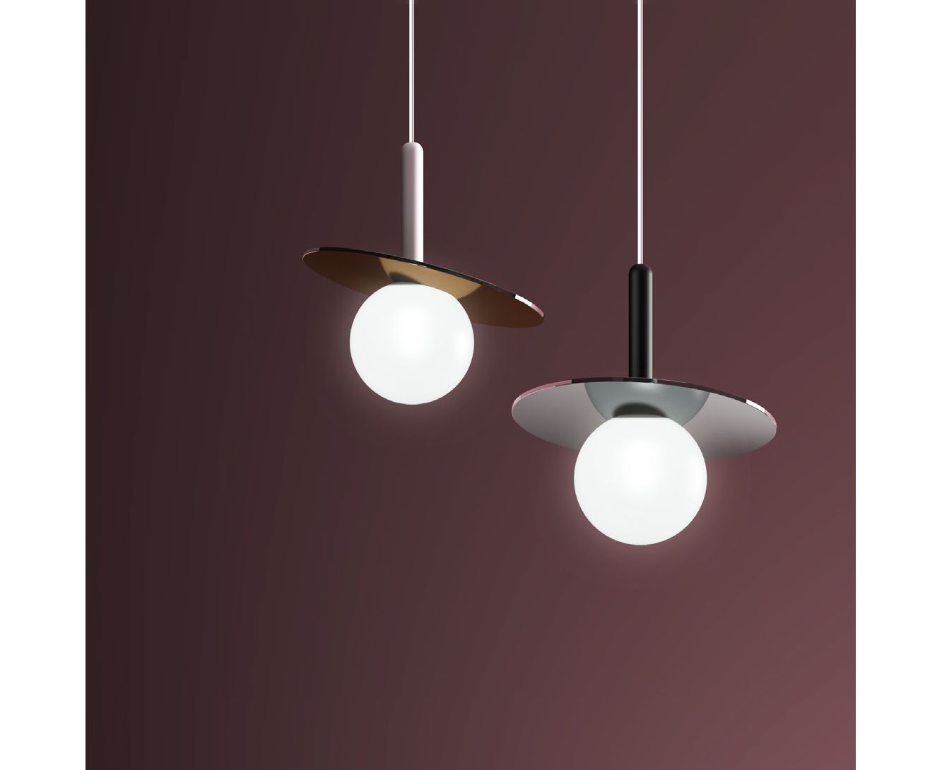 Простой, минималистский подвесной светильник чисто геометрических форм и точно рассчитанных пропорций. Диск из стекла, помещенный в наклонном положении, характеризует стиль этой лампы и придает ей тонкий, элегантный вид: лампы, кажется, вращаются в воздухе и танцуют вместе, как грациозные подсвеченные балерины.