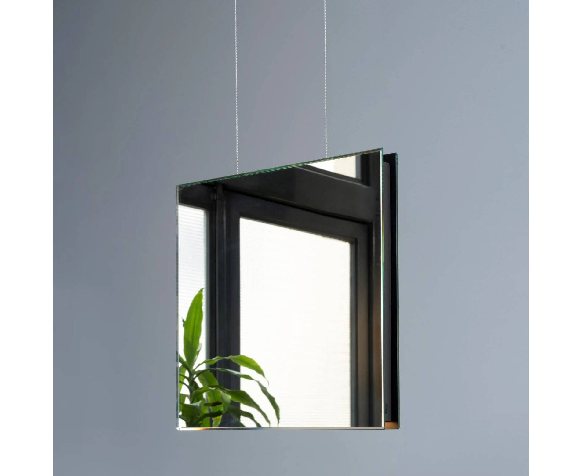 Mirror Square - это подвесной светильник из зеркального стекла и алюминия, доступный в различных вариантах отделки: прозрачное зеркало, дымчато-серое зеркало, многоцветное зеркало.