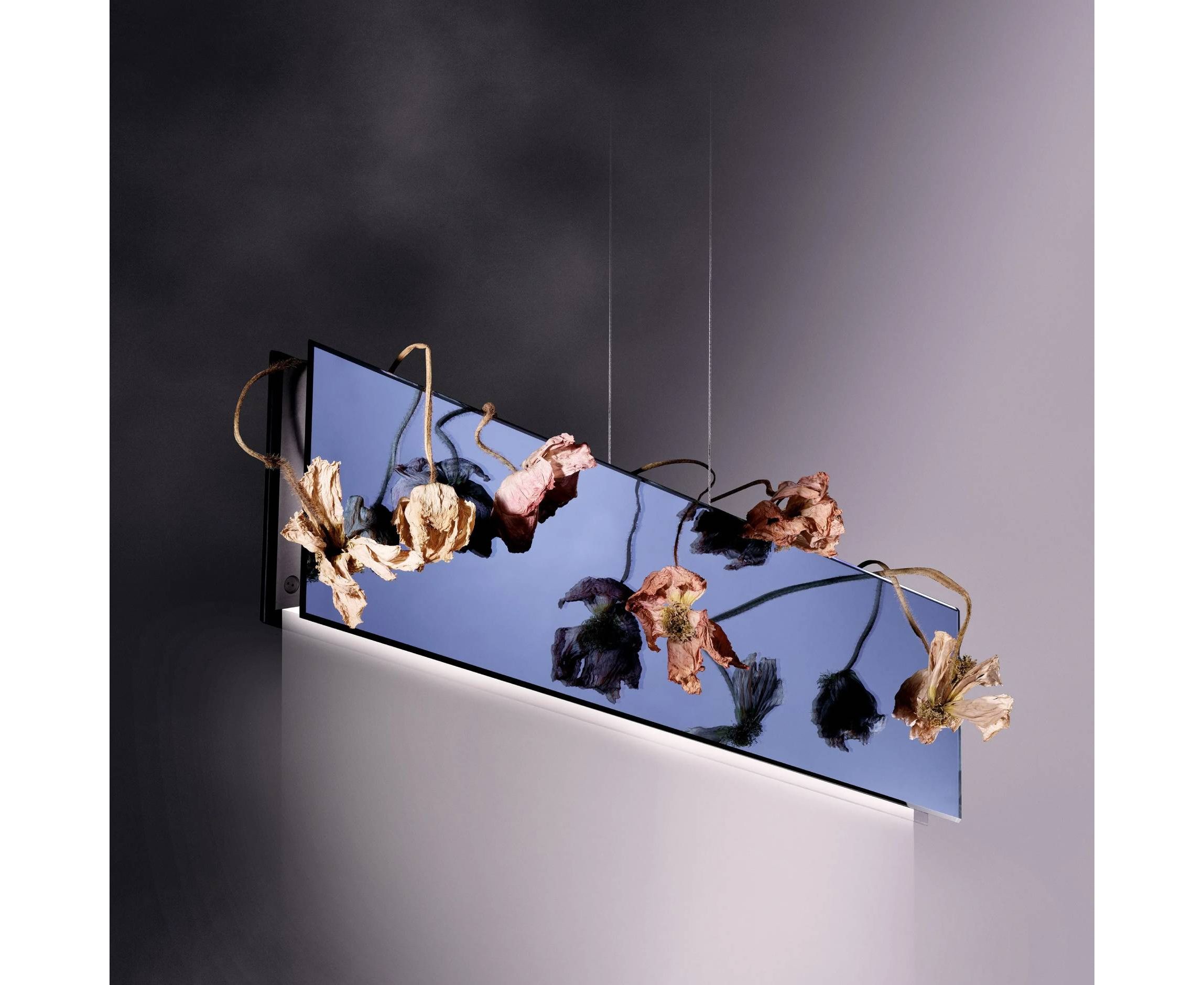 Mirror Wide - подвесной светильник из зеркального стекла и алюминия, доступный в различных вариантах отделки: прозрачное зеркало, дымчато-серое зеркало, многоцветное зеркало.