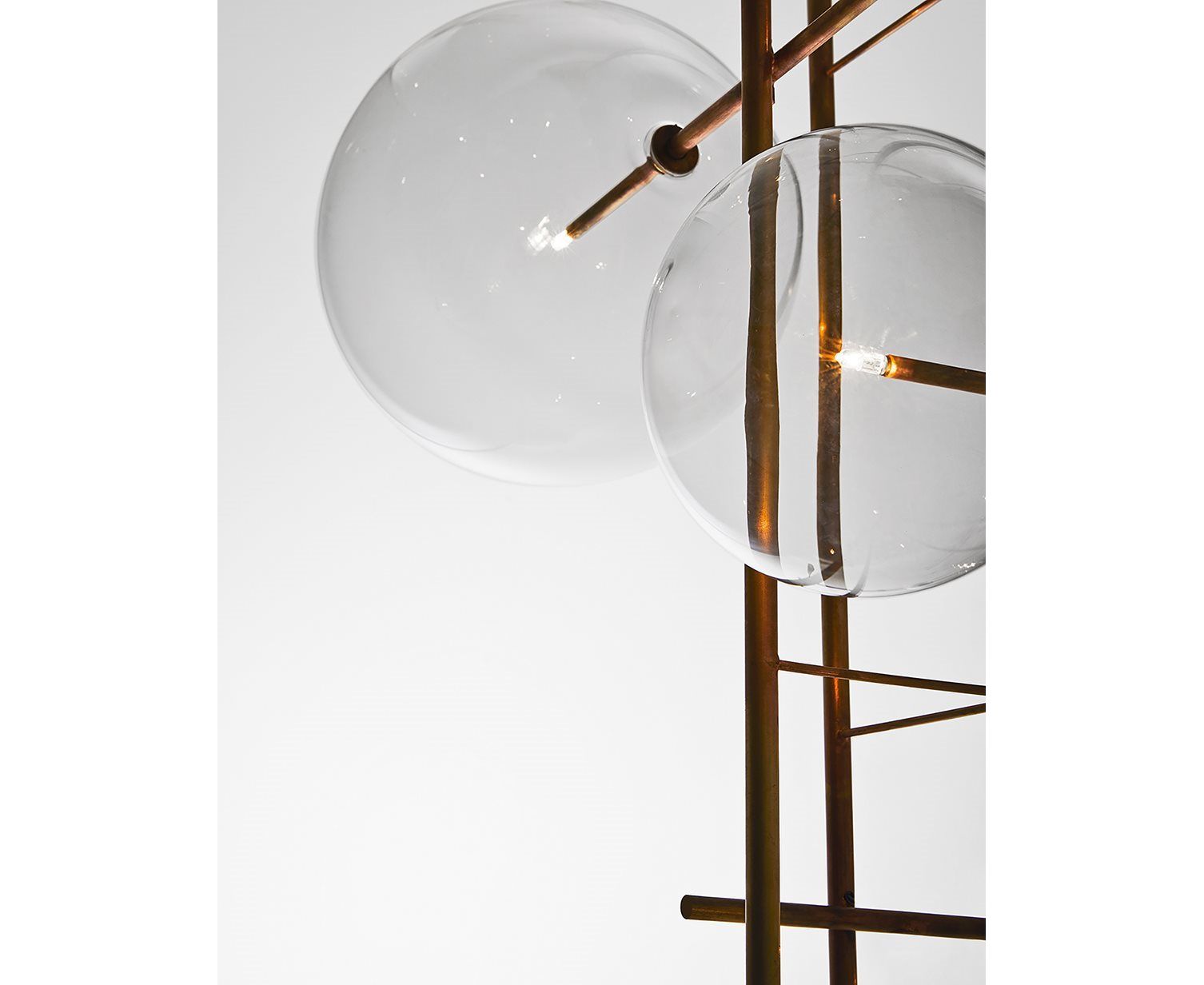 Подвесной светильник со светодиодным точечным освещением (12 Вт). 8 прозрачных шариков из выдувного стекла. Доступна также версия с 6 шарами. Металлические детали из вручную полированной латуни. Полированная латунная отделка выглядит естественно пятнистой и неровной. Поставляется с кабелем длиной 4 метра.