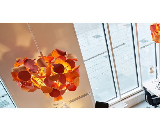 Подвесная лампа Leaf Lamp доступна в диаметре 130 см. Leaf Lamp обладает звукопоглощающими качествами класса А. Светильник радикально улучшает восприятие речи в непосредственной близости. Под Leaf Lamp шепот ничем не хуже крика. Создайте свою собственную лампу Leaf в смешанных цветах.