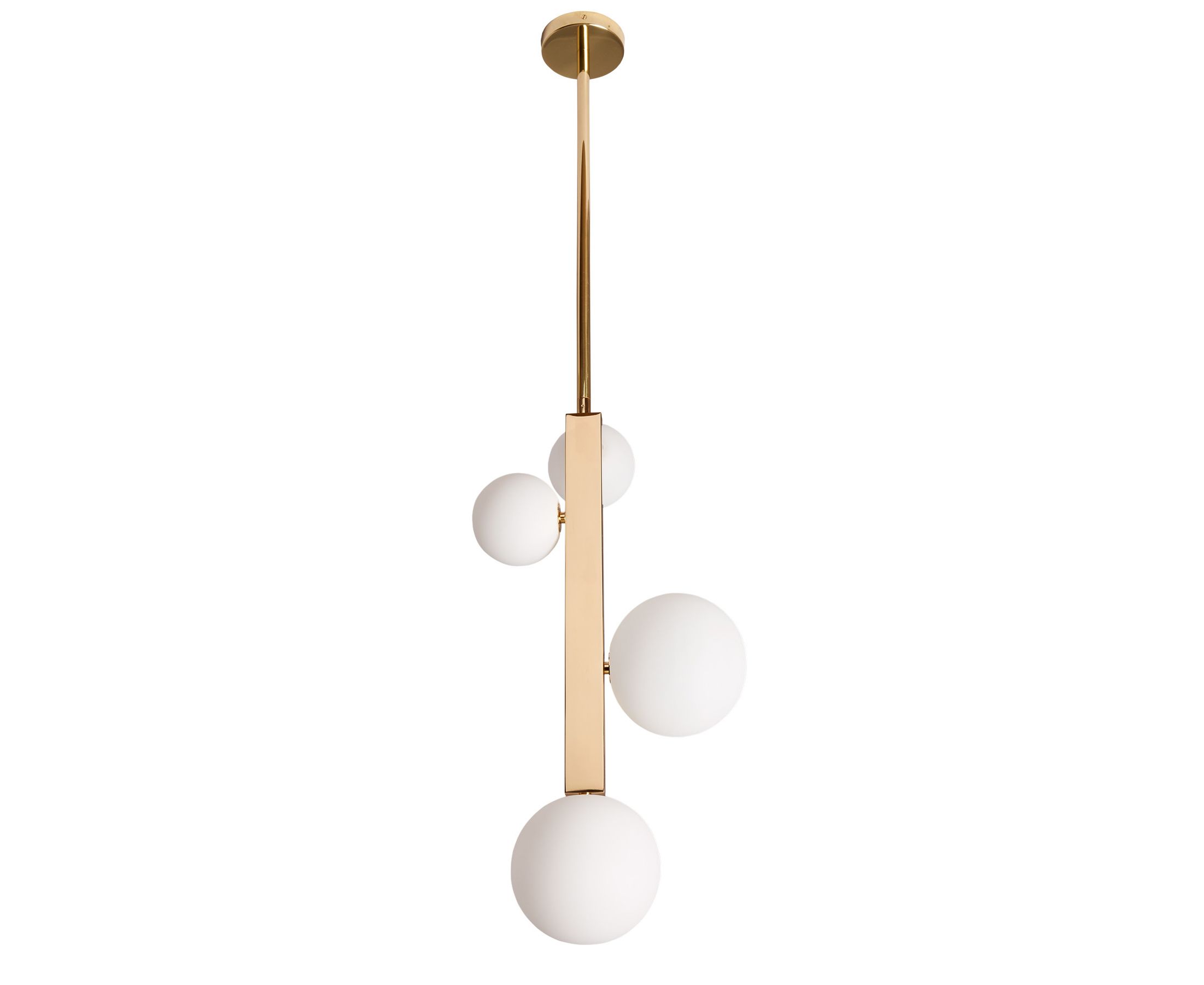 Подвесной светильник Vermeer вдохновляет вспомнить знаменитые классические произведения искусства и дизайн ювелирных изделий. Современная деталь имеет четыре сферы из опалового стекла, асимметрично расположенные вокруг минимальной и лучистой полированной формы латуни.
