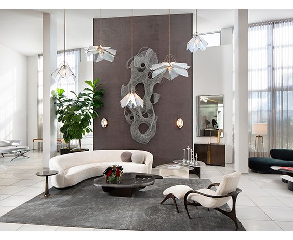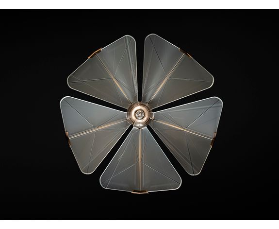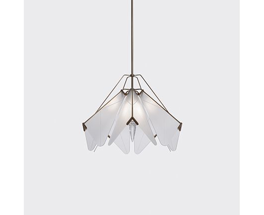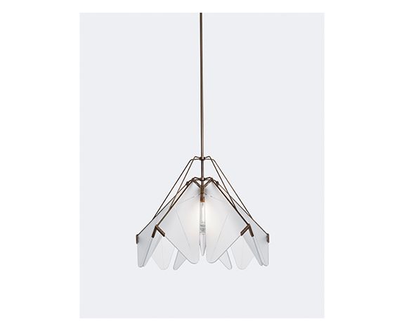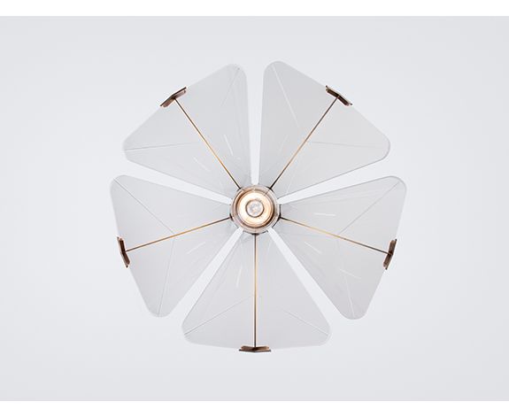 На коллекцию Bloom влияет жизненный цикл цветка и его анатомия. Деликатно удерживаемая внутри бронзовой арматуры, каждая деталь состоит из единого твердого, выдувного стекла, содержащего источник света. Свет окружен и защищен панелями с гравировкой из прозрачного и стекла кислотного травления, которые указывают на прожилку лепестка. Комбинация материалов создает рентгеновское качество при освещении, и форма кажется невесомой, когда она трансформируется из дня в ночь.