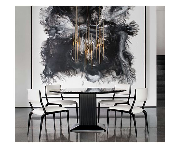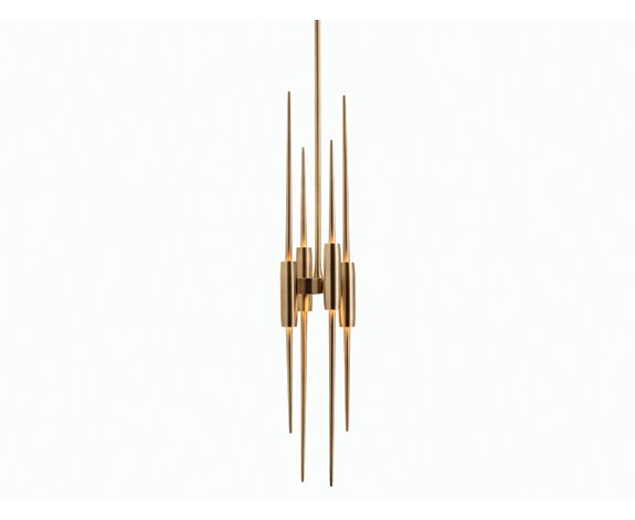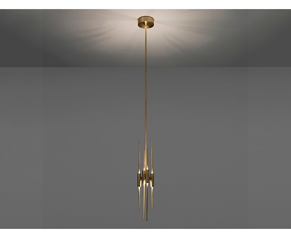 Этот элегантный подвесной светильник, являющийся данью вневременной современности ресторана Four Seasons в Нью-Йорке, излучает силу вертикального измерения, поскольку свет омывает его изысканную материальность.