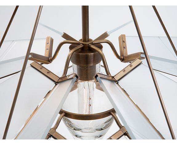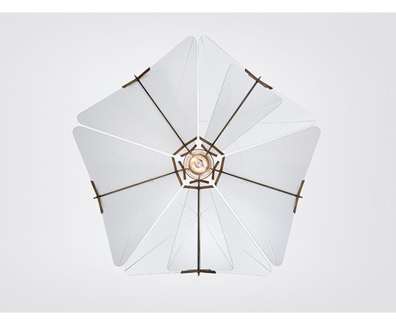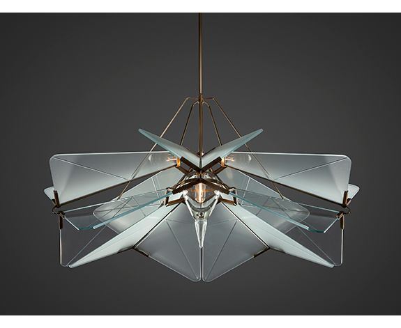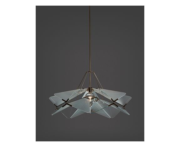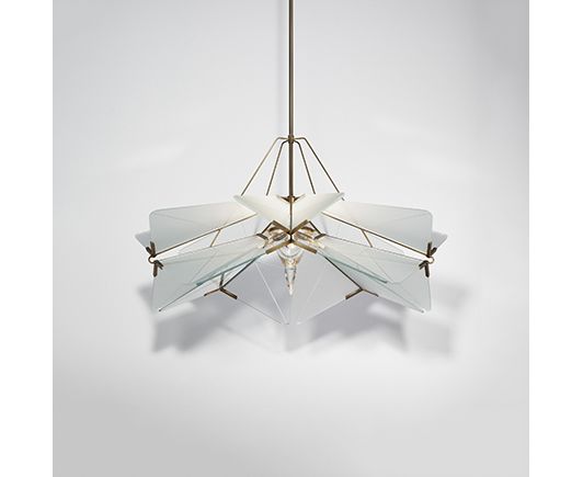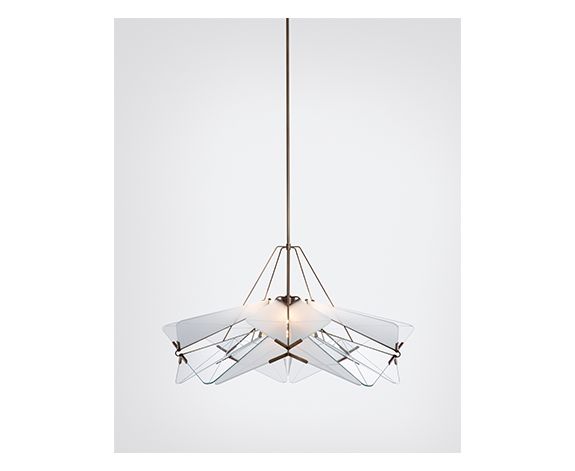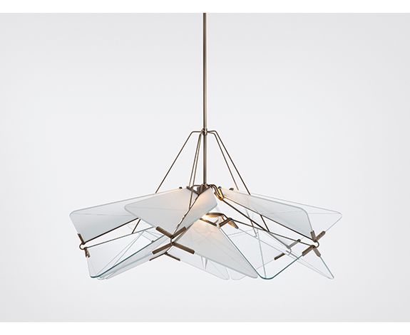 На коллекцию Bloom влияет жизненный цикл цветка и его анатомия. Деликатно удерживаемая внутри бронзовой арматуры, каждая деталь состоит из единого твердого, выдувного стекла, содержащего источник света. Свет окружен и защищен панелями с гравировкой из прозрачного и стекла кислотного травления, которые указывают на прожилку лепестка. Комбинация материалов создает рентгеновское качество при освещении, и форма кажется невесомой, когда она трансформируется из дня в ночь.