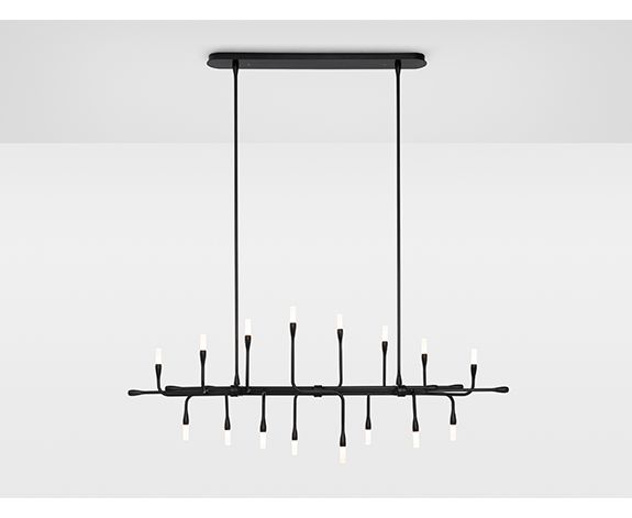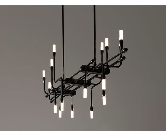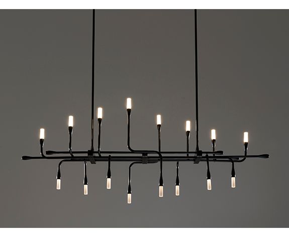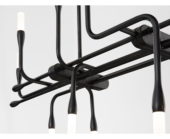 Вдохновленная формой, мастерством и извилистым движением медных инструментов, люстра Soundtrack представляет собой элегантное расположение света вверх и вниз. Баланс и ритм изогнутой латуни демонстрируют универсальность материала. Блестящая черная отделка сочетается с рассеянными светодиодами для цветовой схемы, напоминающей ноты. Soundtrack, оснащенный диммируемыми светодиодами, спроектирован для создания теплой атмосферы или четкого освещения в сопровождении столовой или кухни.