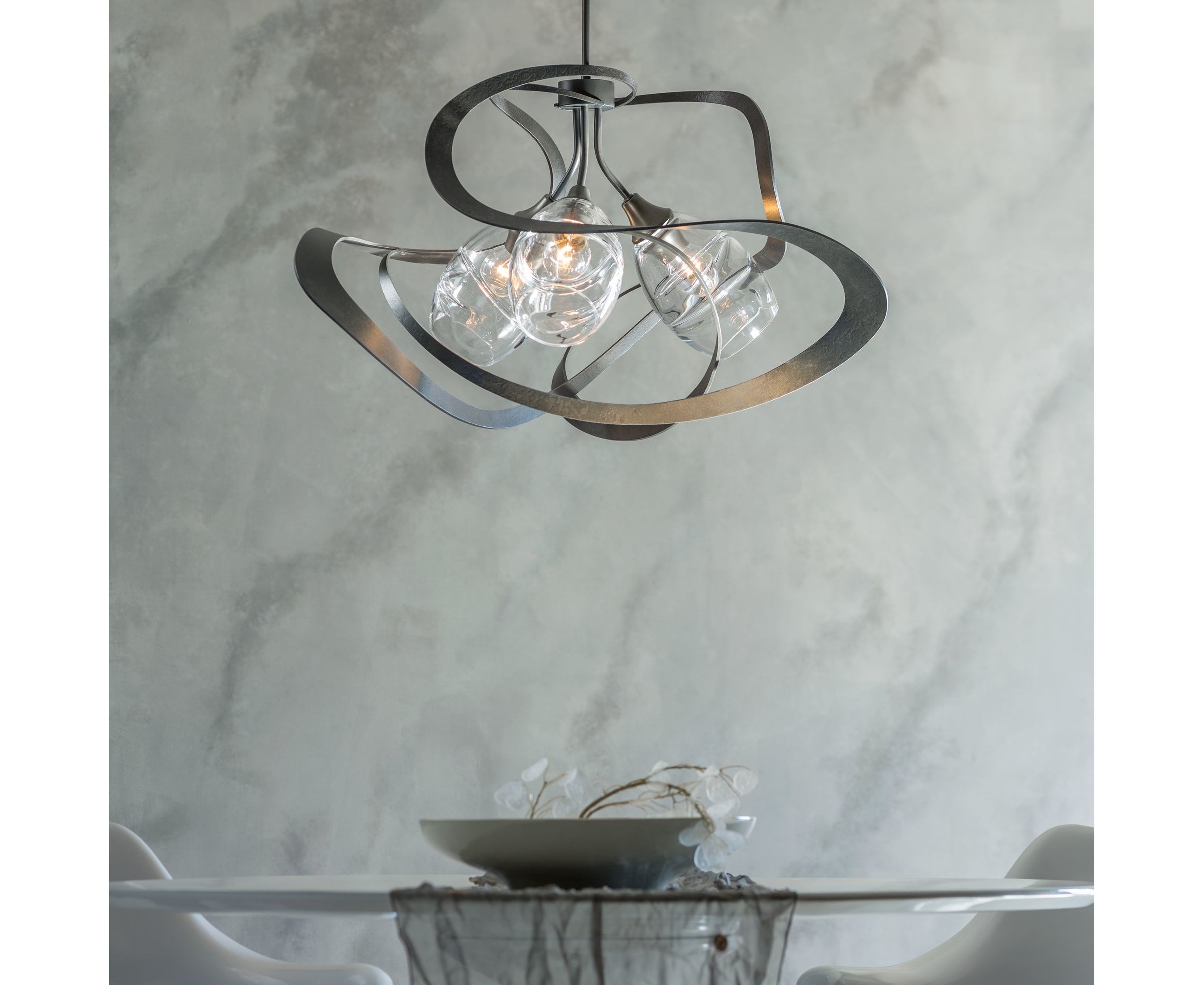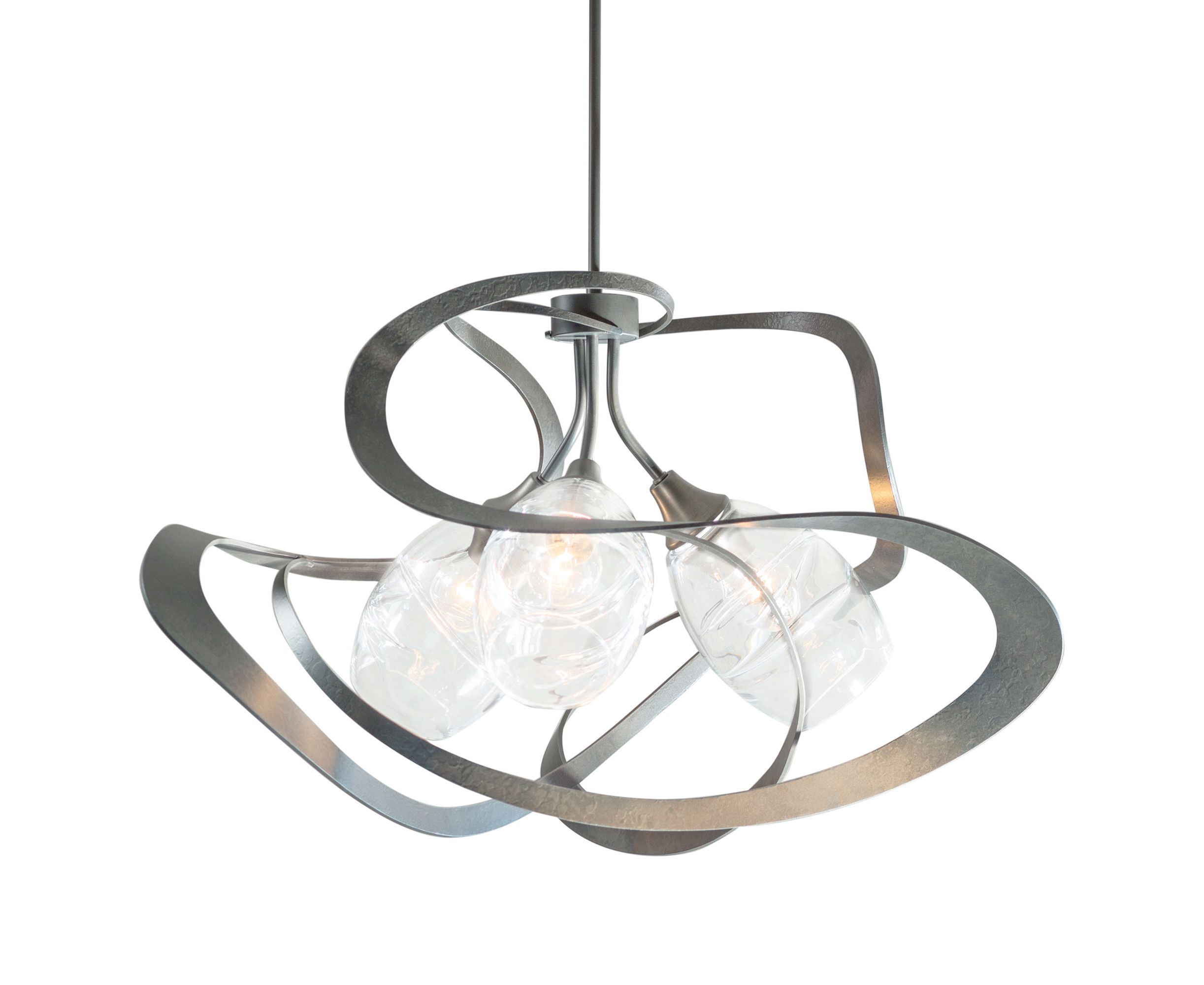 Скульптурная сталь поддается свободному стилю Nest Pendant. Каждый угол обеспечивает изящную органическую композицию. Три толстых абажура из выдувного стекла с контурными деталями излучают мягкий рассеянный свет на обширную площадь.