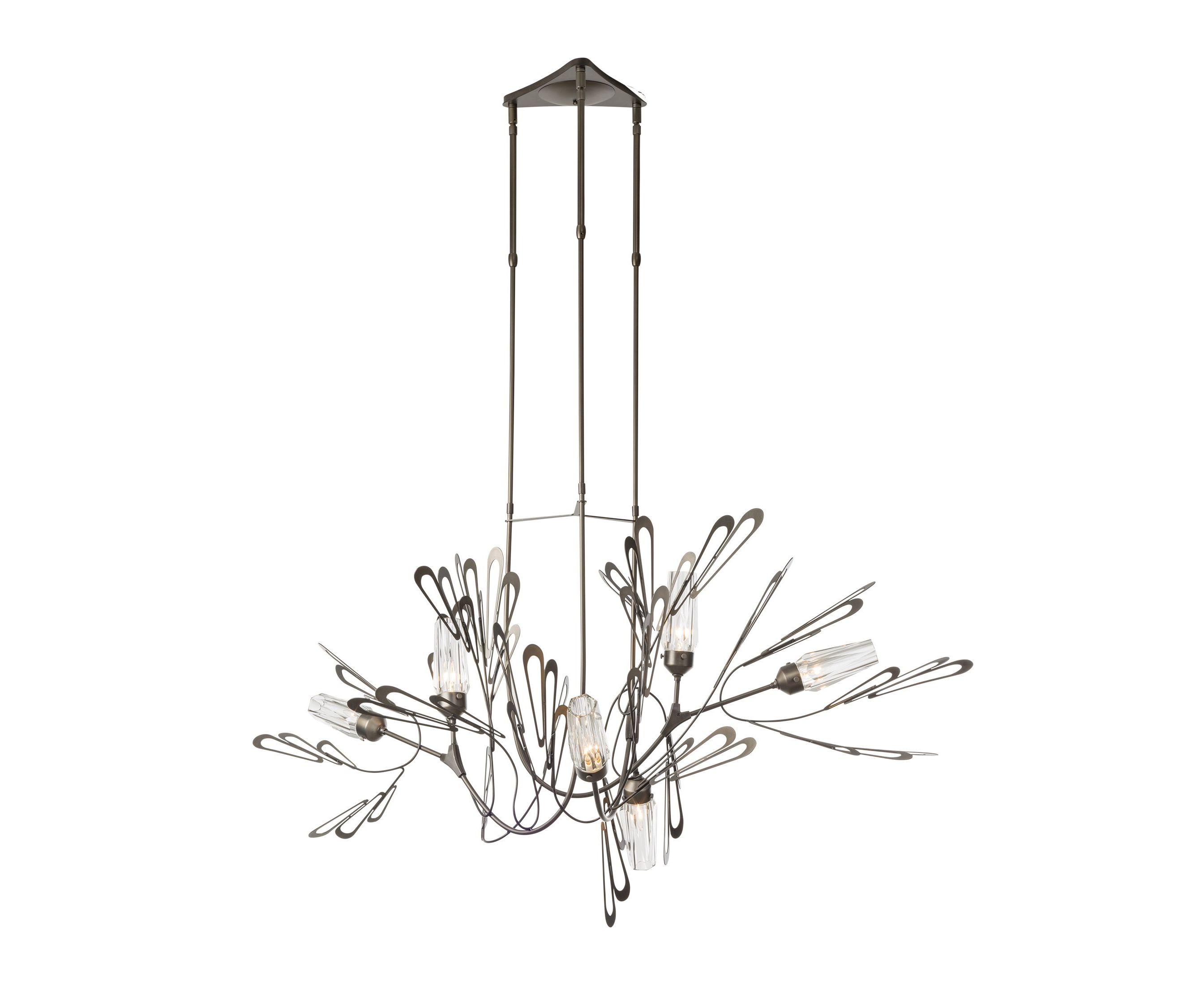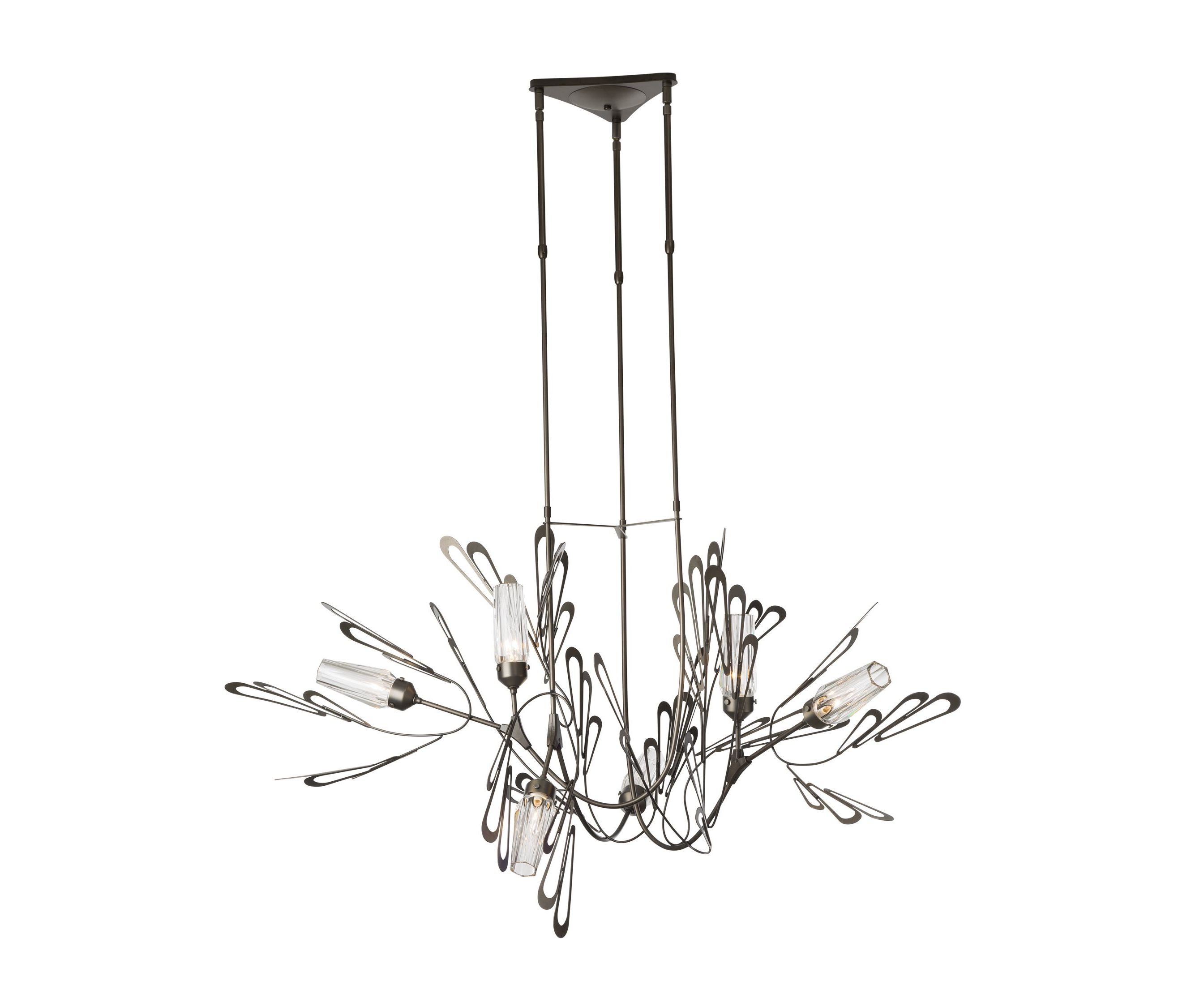 Элегантные стальные перья ручной ковки включают в себя приподнятую композицию подвески Phoenix. Подсветка изнутри, шесть граненых кристаллов добавляют к своей гламурной интонации. Скульптурные и большие качества делают его центром внимания и достойным его мифического тезки.