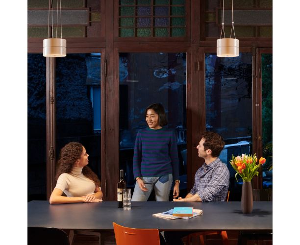 Два аспекта, скрепленные прорезью, суть которой состоит в том, чтобы составить тонкую линию тени для достижения общей легкости. Betwo возникла из идеи использования инновационных и пространственных отношений для создания технологии Opti Diamond, способной изменить восприятие пространства, оживив его. Прямое, а также прямое/непрямое излучение, с версиями общего освещения, u UGR<19 и световыми потоками от 1300 лм до 6600 лм. Было решено добавить элемент к простой круглой форме, способный улавливать и рассказывать свет. Эти два элемента также можно комбинировать с различными вариантами отделки для создания декоративных деталей, которые вписываются в обстановку и характеризуют ее.