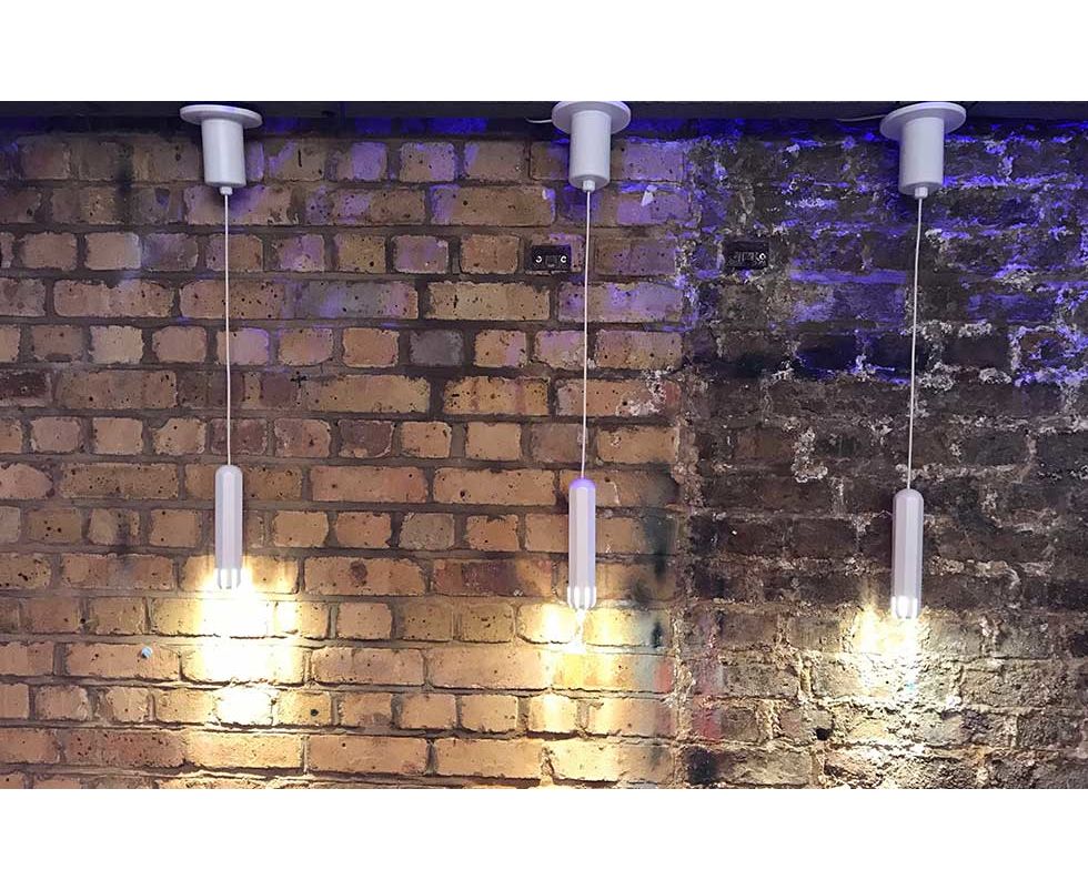 Brixton - это подвеска, вдохновленная викторианской железной дорогой и жилой архитектурой южного Лондона. Дизайнер Джеймс Бартлетт взял восьмиугольные башни, которые появляются на зданиях в этом районе, в качестве отправной точки для этого дизайна, который имеет сильную инженерную эстетику. Точечные подвески являются чрезвычайно гибкими для различных вариантов установки, с твердым, промышленным ощущением.