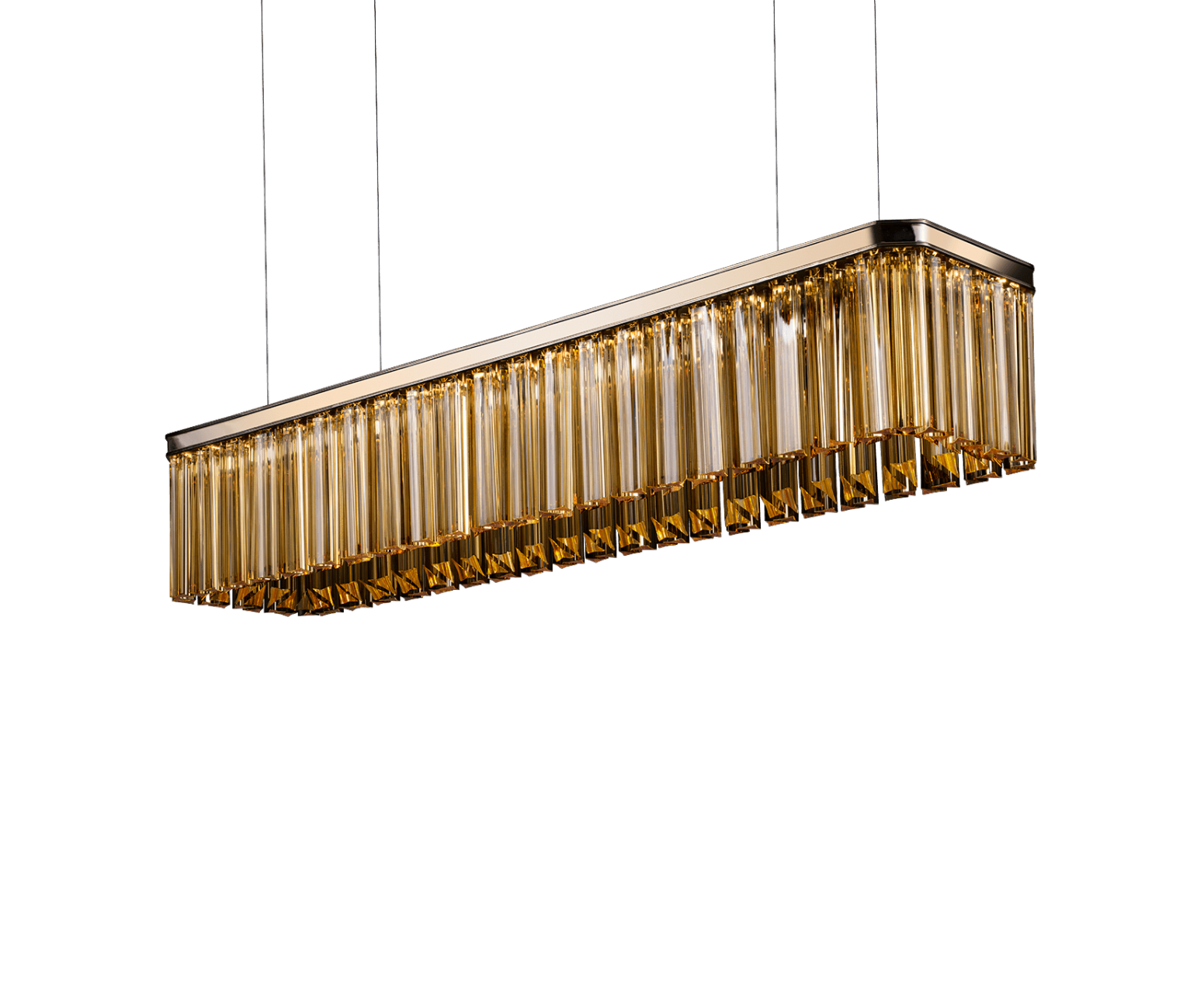Подвеска из трехгранного янтарного стекла, металл с отделкой светло-золотистого цвета. Доступны в разных размерах и цветах. Коллекция Opera Classic.