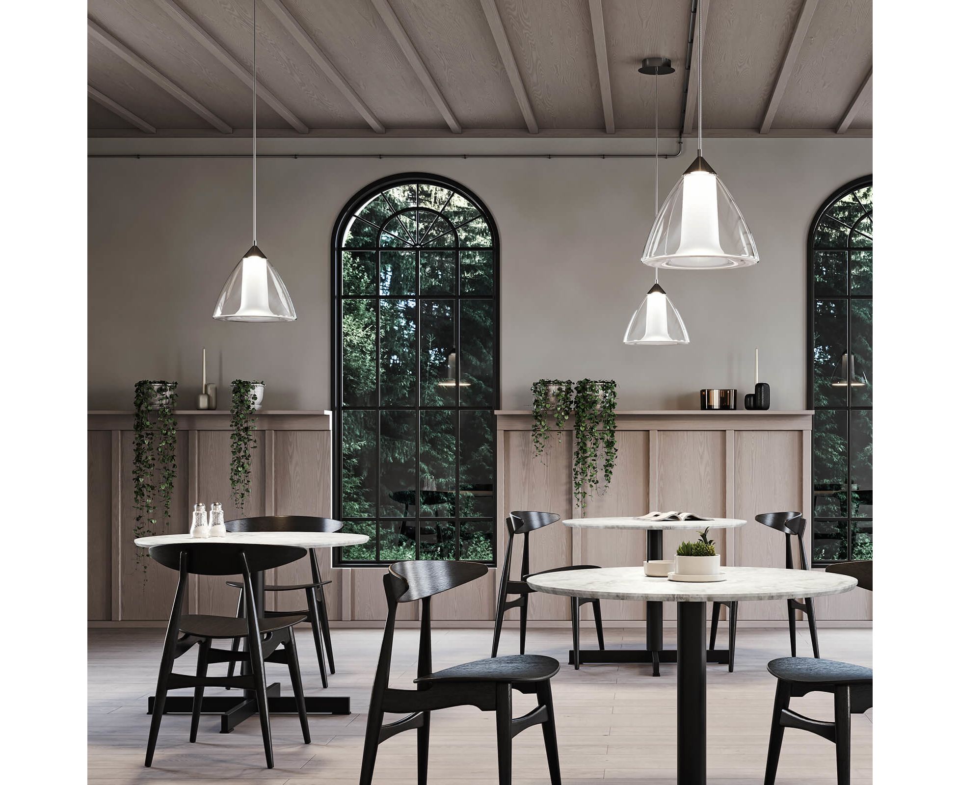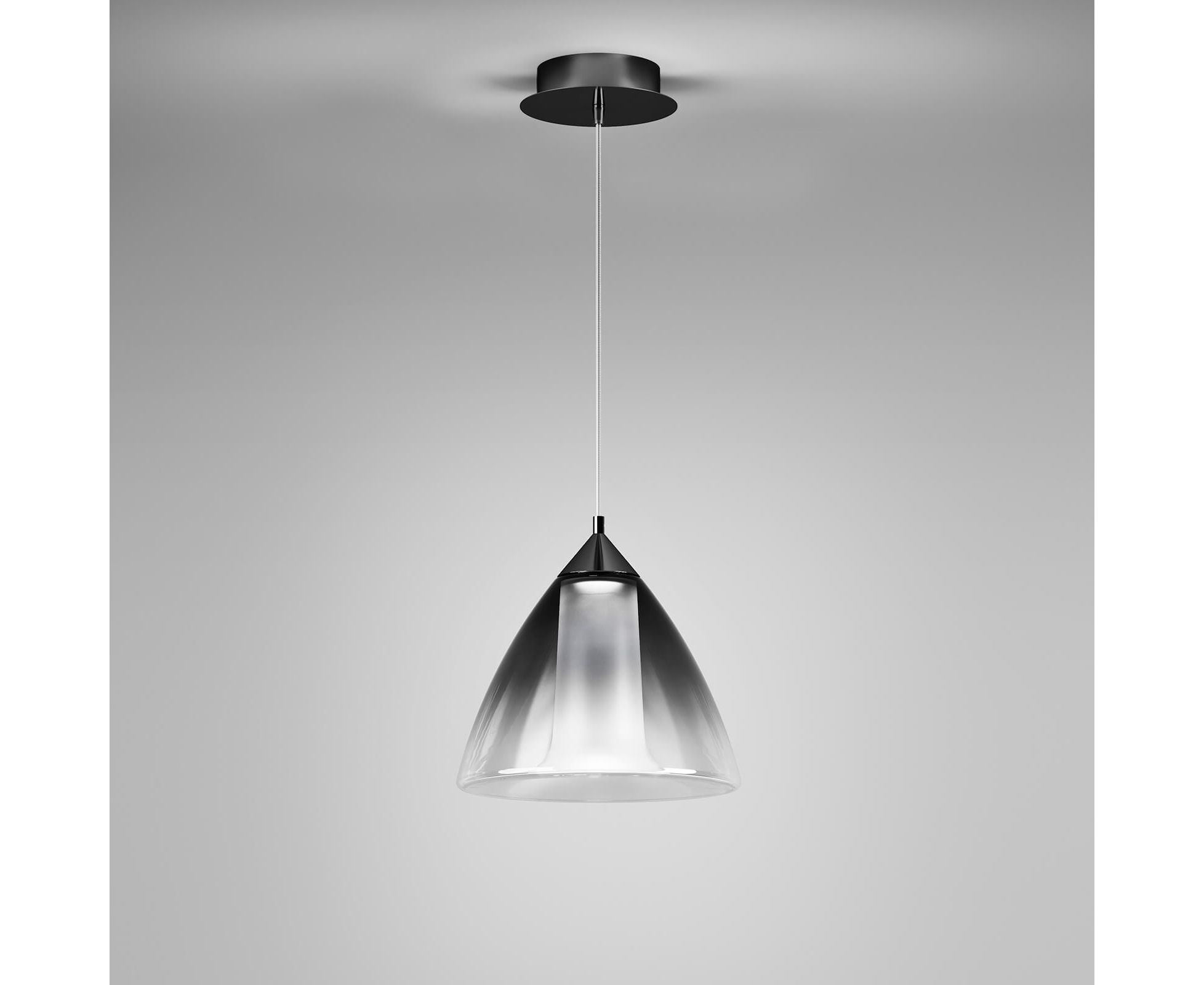 Подвесной светильник Artika из прозрачного, белого или титанового выдувного стекла. Матовый белый внутренний стеклянный диффузор. Металлическая конструкция с железно-серой или белой отделкой в сочетании с цветом стекла.