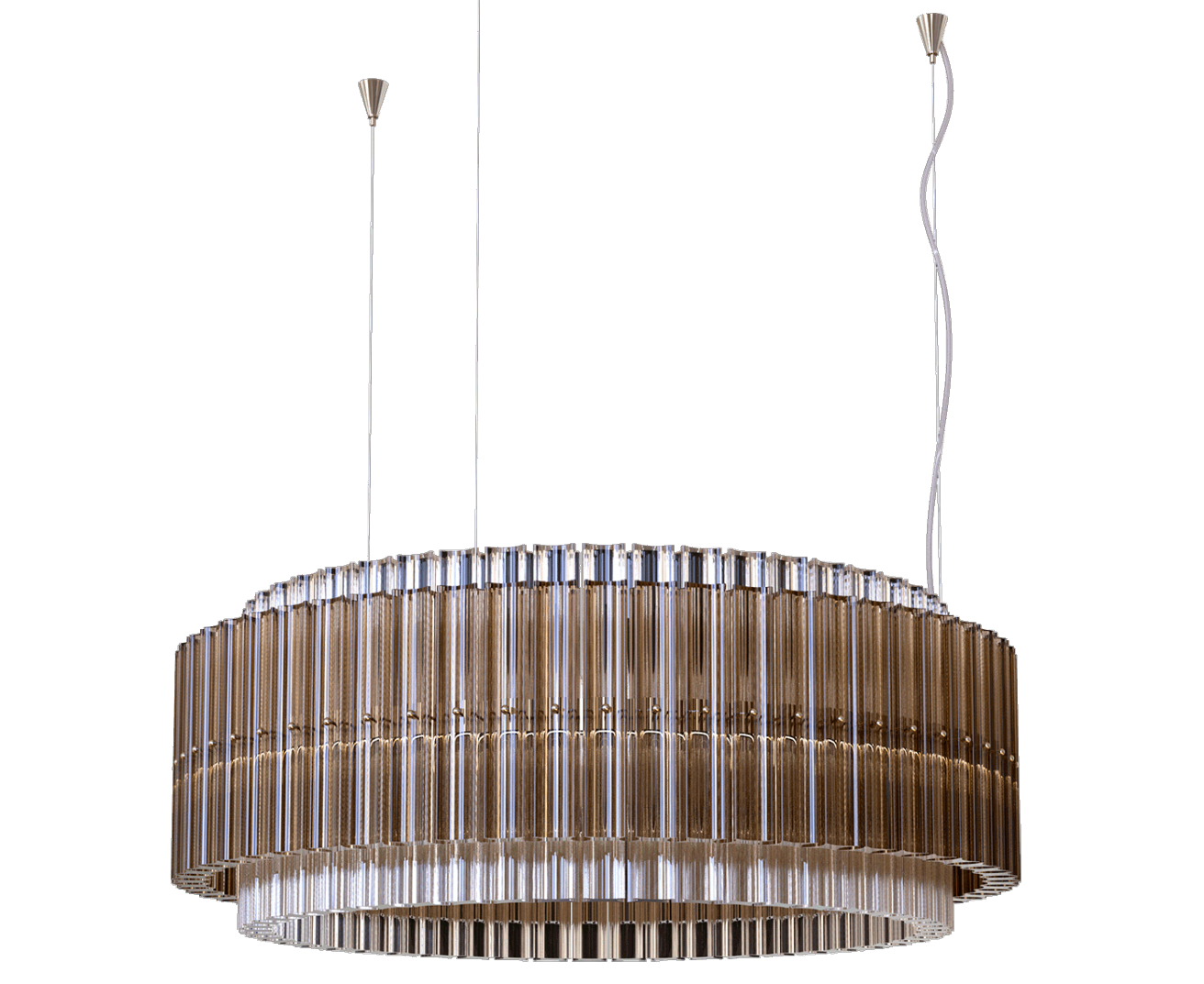 Подвеска из четырехгранного прозрачного и тикового стекла, металлическая с хромированной отделкой. Доступен в различных цветах стекла.