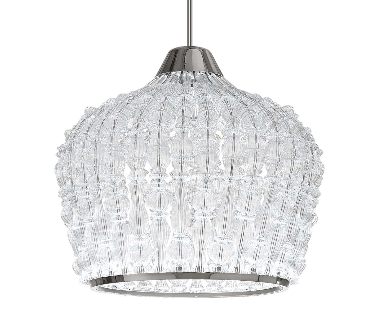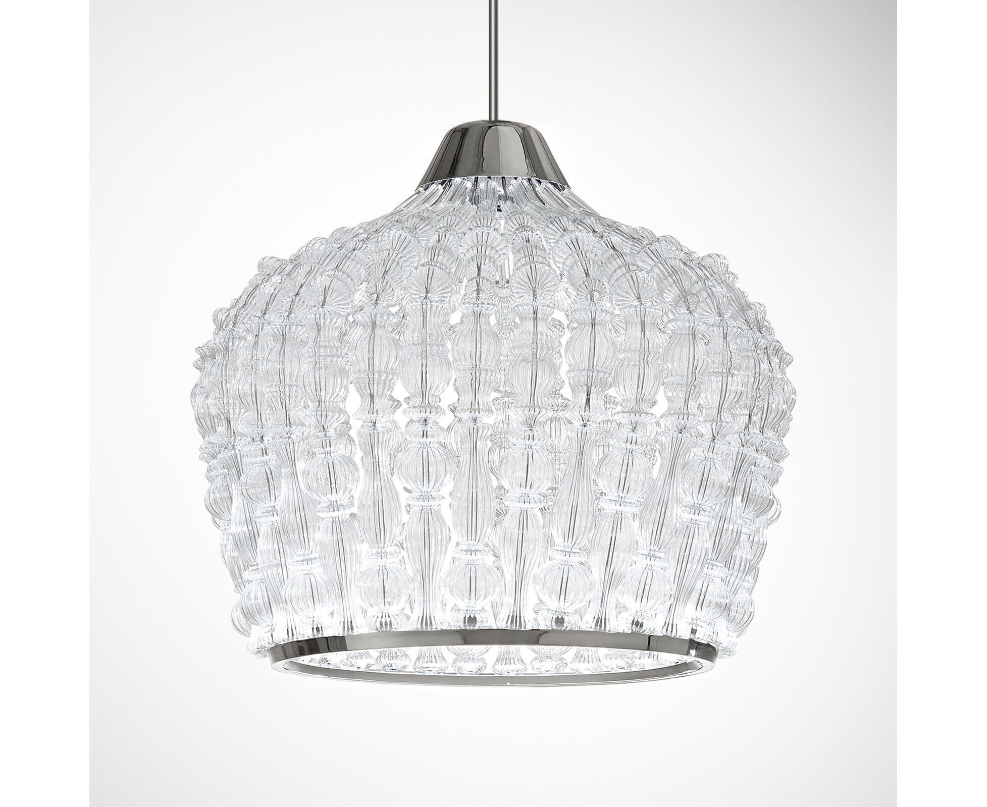 Подвеска с хромированной металлической структурой и элементами из выдувного стекла. Доступны в разных размерах и цветах. Современная коллекция Incanto.