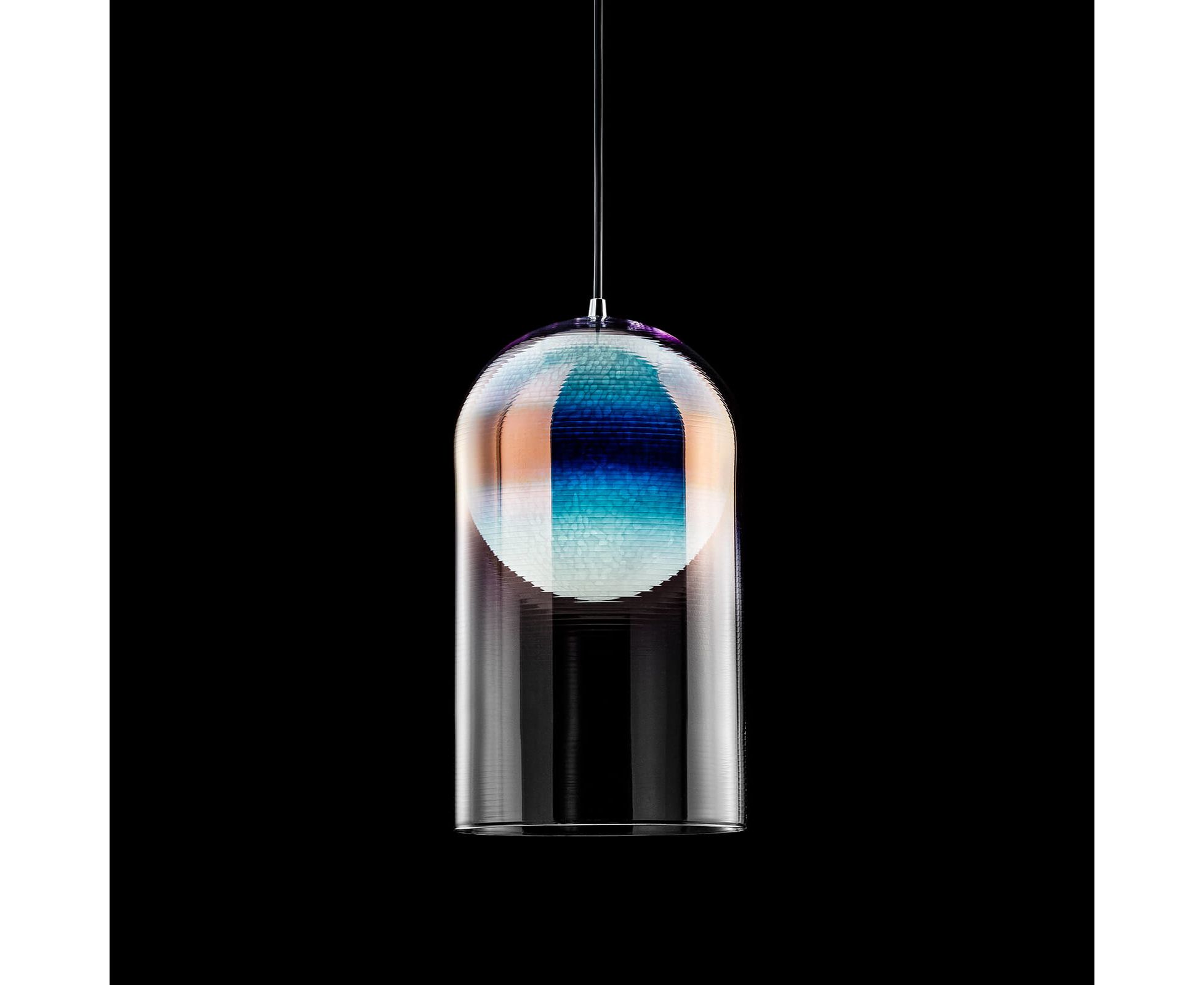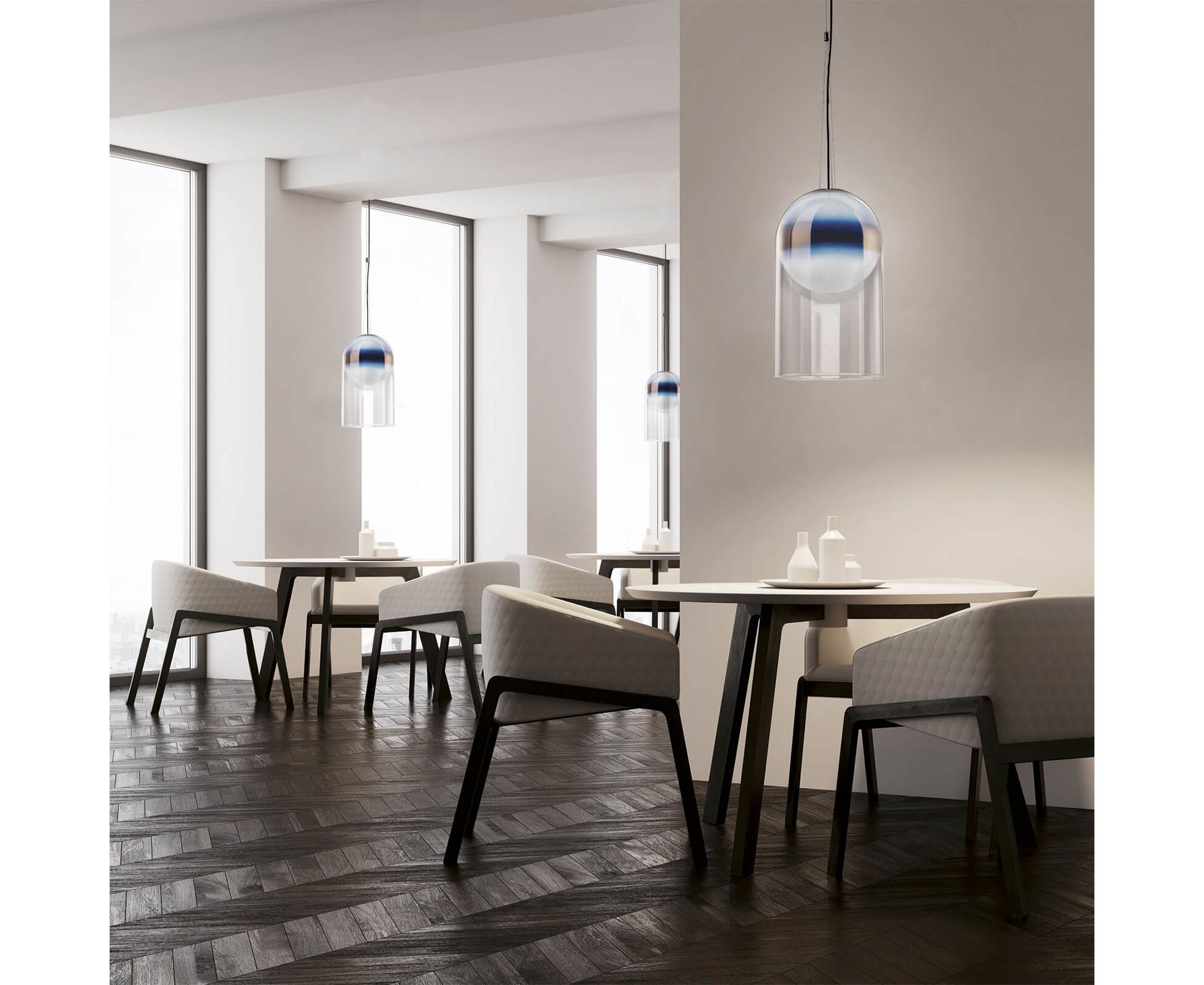 Подвеска из выдувного стекла с отделкой «Copper Lustro» и диффузором из стекла с белой отделкой в виде градиента. Доступный в двух размерах. Современный каталог Incanto.