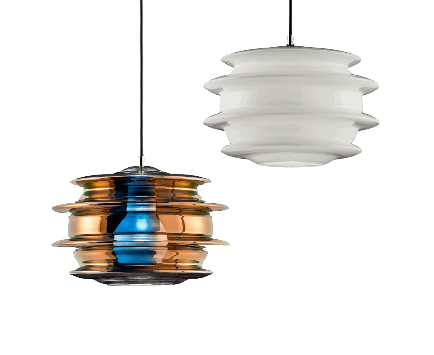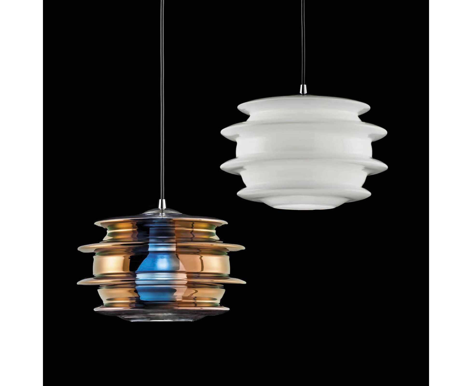 Подвеска из металла с диффузором из выдувного стекла с белой или медной отделкой. Доступен в разных цветах. Современный каталог Incanto.