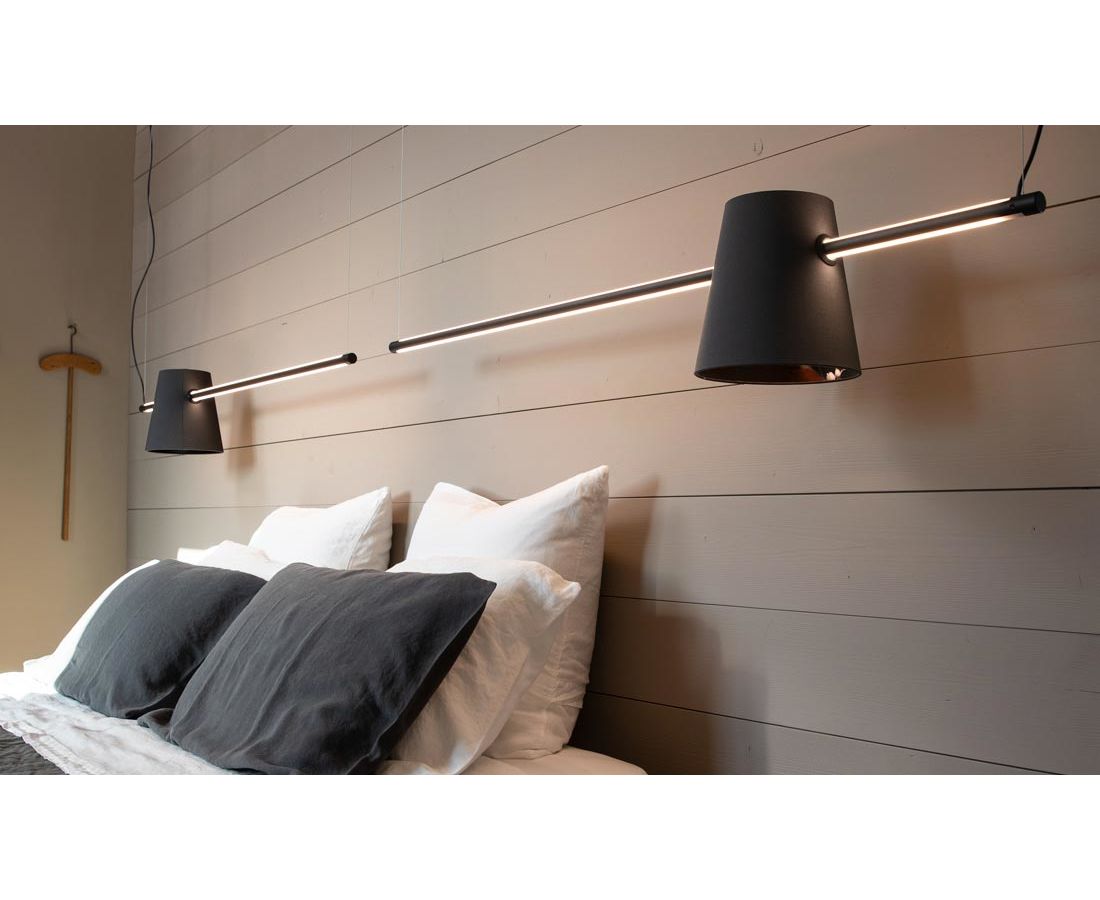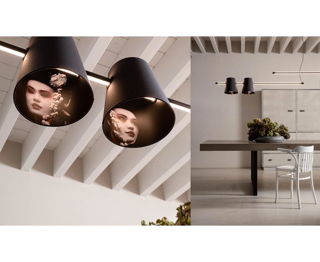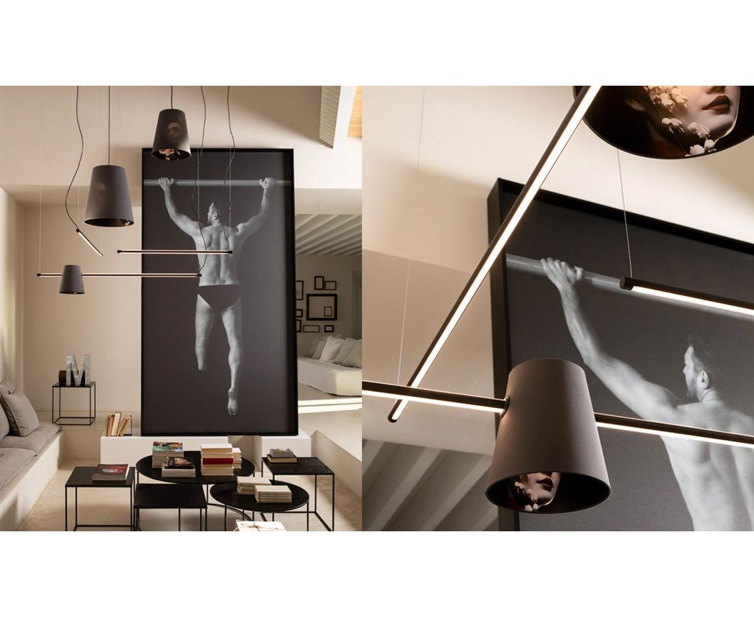 Проект, созданный с целью создания двух разных миров - технического и декоративного освещения - «влюбиться» и жить в полной гармонии. Это дало начало CUPIDO, длинной, минимальной полосе светодиодного света, пронизывающей абажур из ткани.
