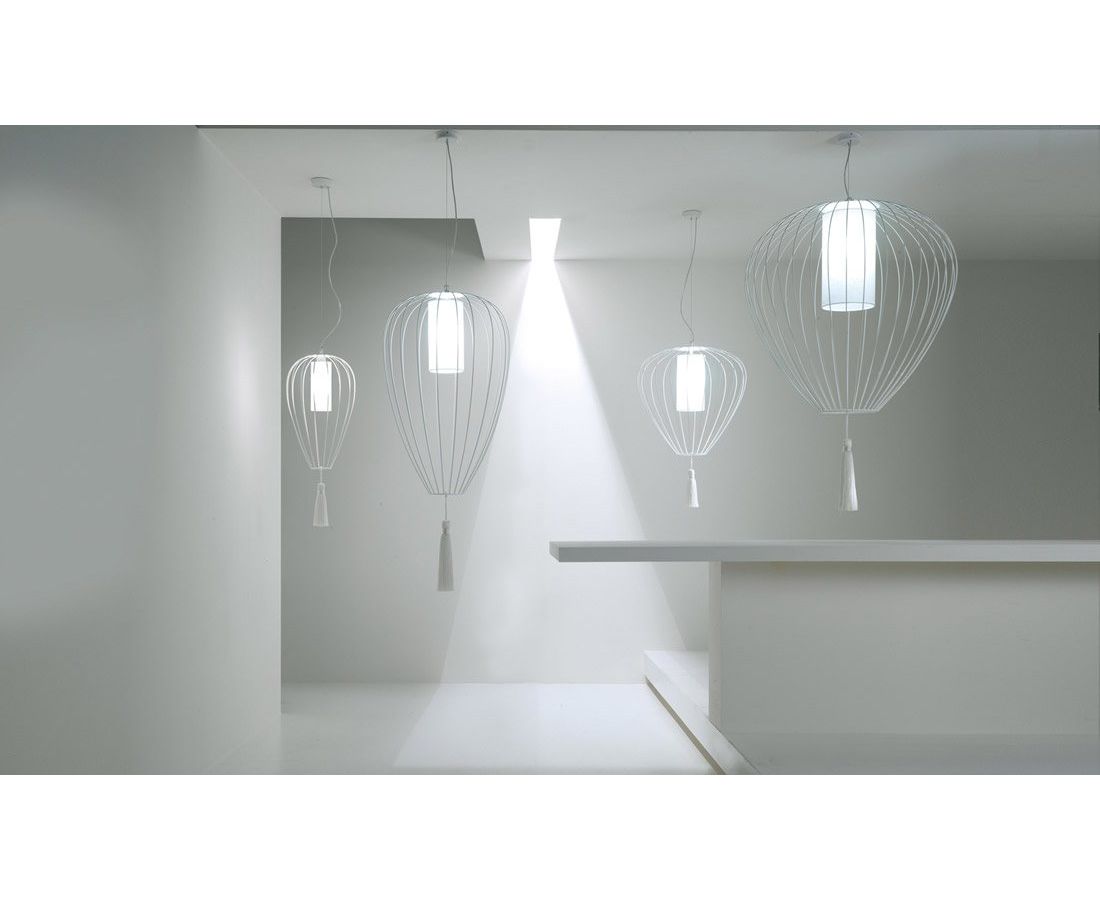 Более двух тысяч лет назад в Китае самые первые фонари взмыли в небо. Cell эмулирует их структуру и их дух, связывая воздух с тонкой металлической проволокой в белом или в новой бронзовой версии, клеткой света, которая повышает ее интенсивность. Светильник - светящееся сердце в белье для внутреннего варианта и в опаловом плексиглас для наружного, дополненное кисточкой из белого или черного шелка в бронзовом исполнении.