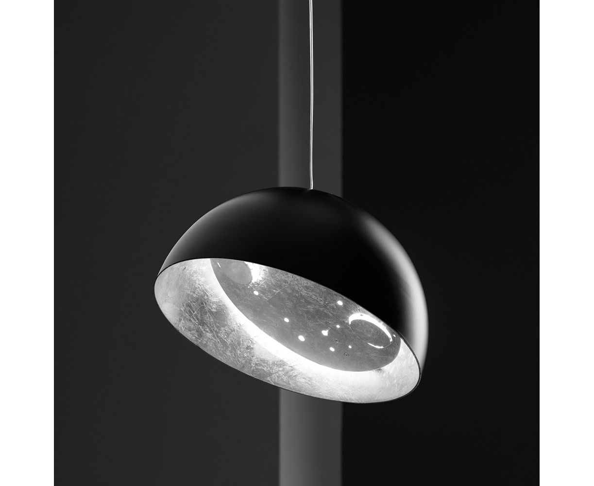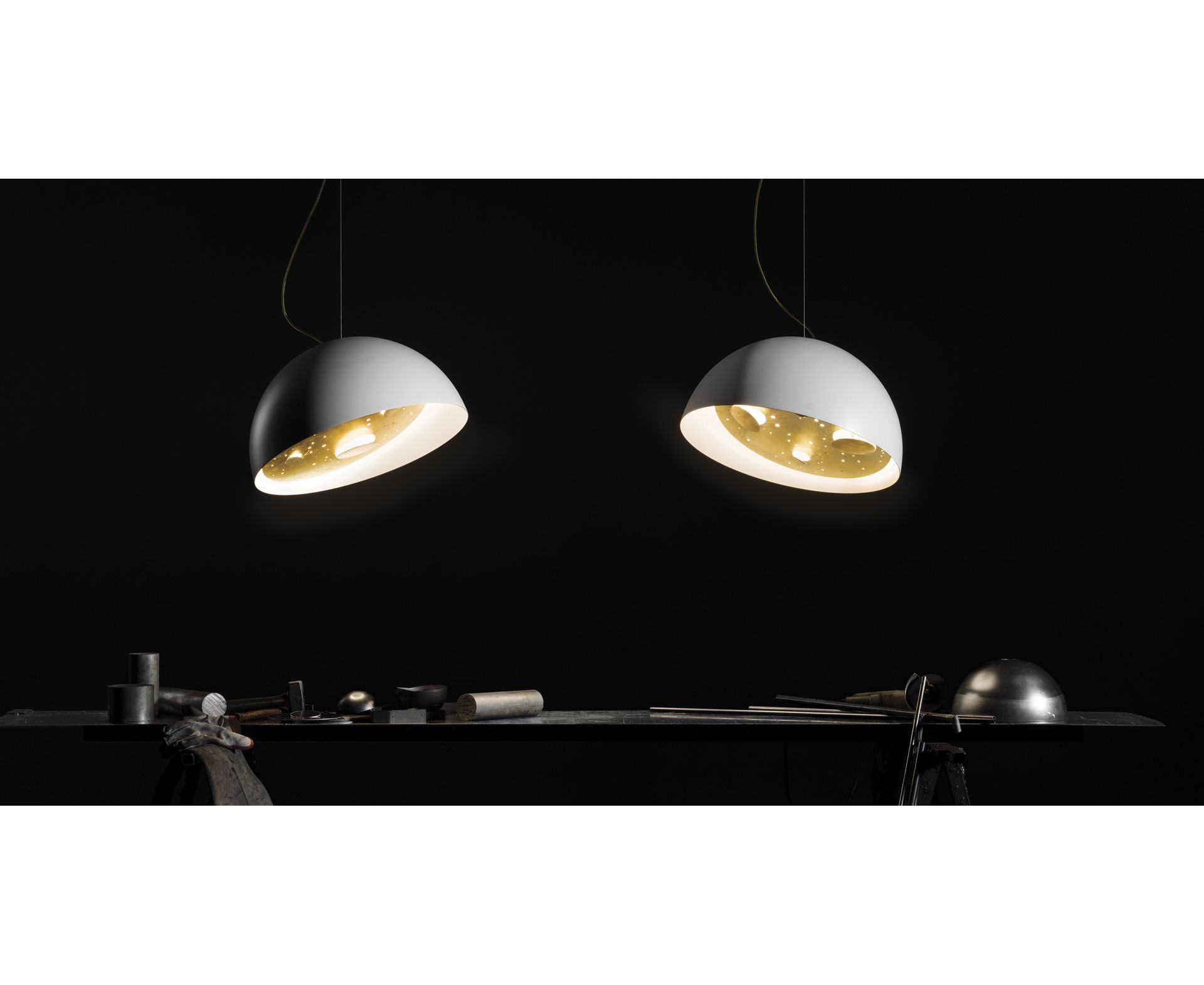 Алюминиевый купол, с его божественной и бесконечной симметрией, встречает и окутывает звездное и сверкающее небо из последней коллекции Buchi. Под сводом купола свет рождается и равномерно распространяется, излучая окружающую среду с цветами от белого до черного, обогащенными отражениями сусального золота, серебра, меди и бронзы. Именно от слияния ярких звезд серии Buchi с совершенным дизайном купола (Cupola, на итальянском языке) родилась Bucola, новейшая коллекция светильников, доступных в напольной, настенной и подвесной версиях.