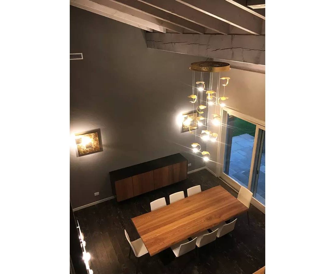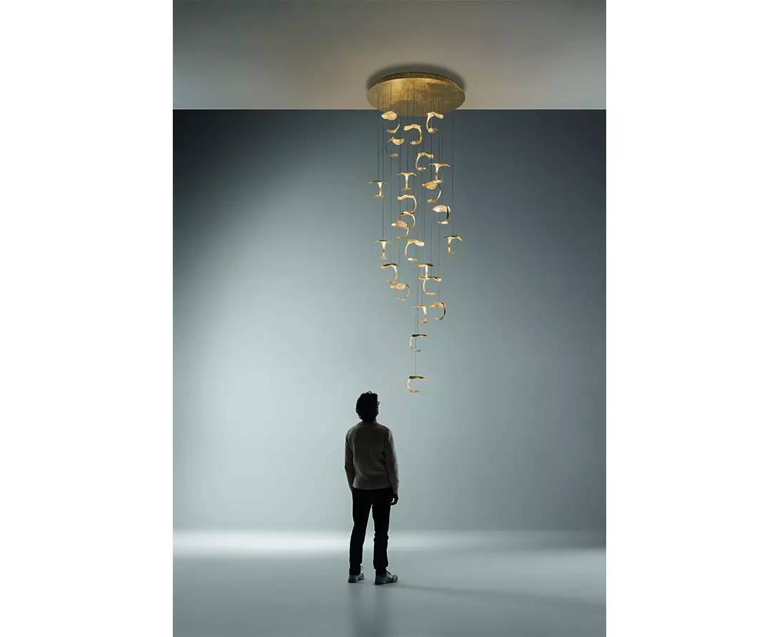 Сталь сжимается, чтобы стать больше! GIGINE рождается из переосмысления размеров лампы Gi.Gi: размер становится меньше и умножается, образуя световой каскад, который развивается на разной высоте. Кажется, что каждый элемент парит в воздухе, приспосабливаясь к большим пространствам и украшая окружающую среду благодаря различным доступным вариантам отделки.