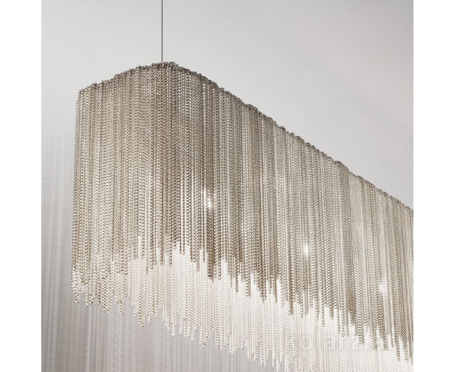 Облака из света: невероятная серия CLOUD являет собой удивительный дизайн, вдохновленный природой, и превосходное олицетворение стиля. Изящные металлические цепочки напоминают мерцающие облака, плывущие под потолком и создающие волшебные световые эффекты. Сочетающийся по стилю напольный светильник также притягивает взгляд и вызывает восхищение в любом интерьере.