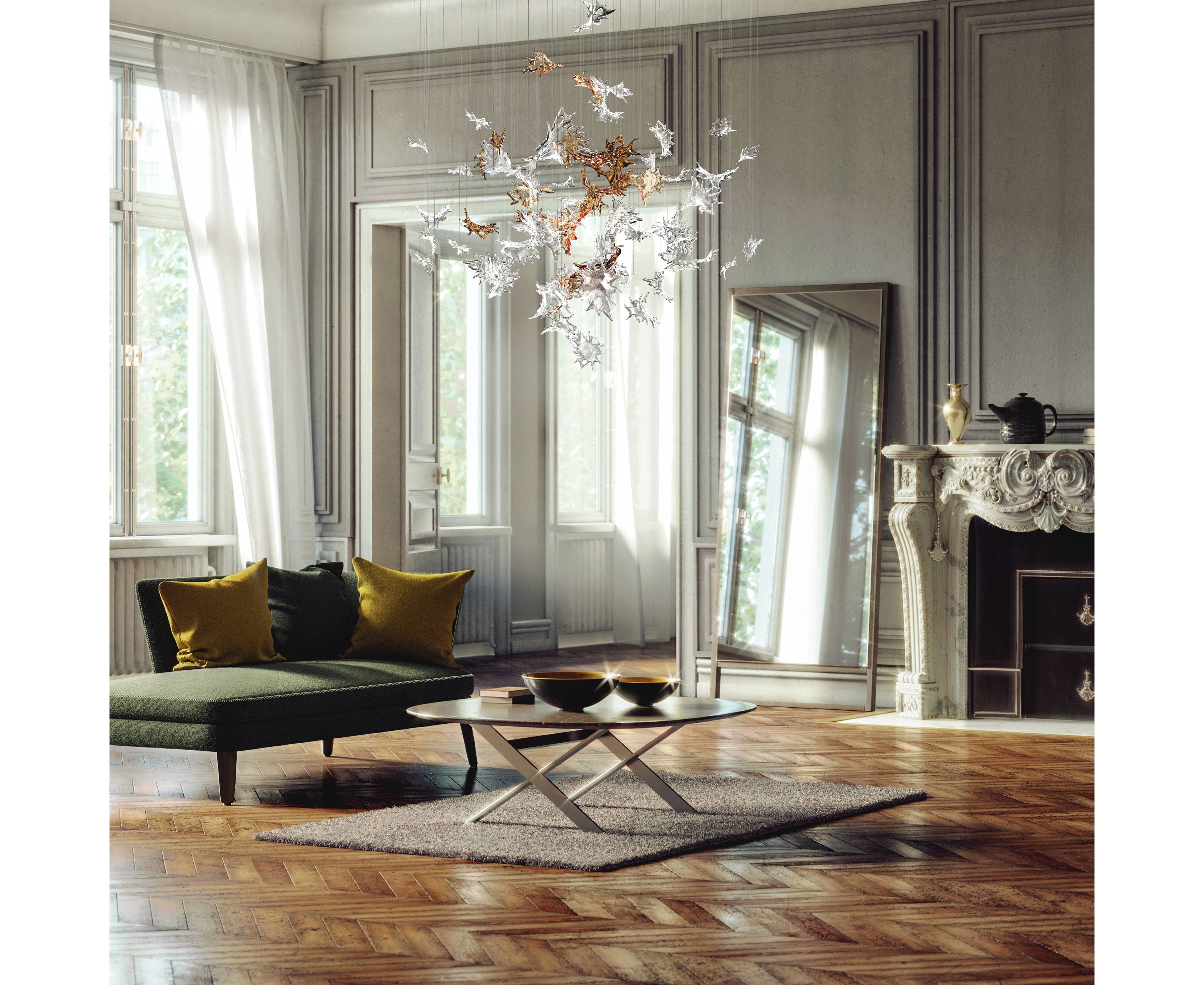 Подвесной светильник чешского бренда Lasvit выполнен из стекла в соответствии с древними традициями чешских стеклодувов. Подвесные элементы светильника воплощают в себе необыкновенный завораживающий танец осенних листьев. Представлен в различных размерах и конфигурациях.