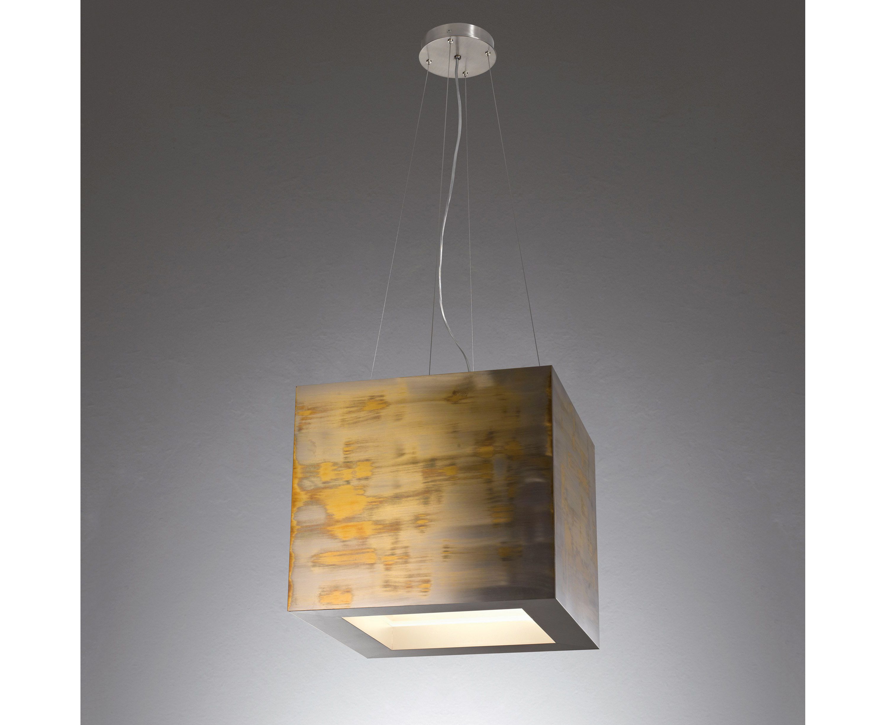 Подвесной светильник с конструкцией из окисленной латуни, проволки из стали и матового стекла для верхнего и нижнего покрытия. MA 15 – это куб из металла и стекла, создающий необычный эффект зависания в воздухе. Изящество обработки и основательность форм дают жизнь этому уникальному изделию.