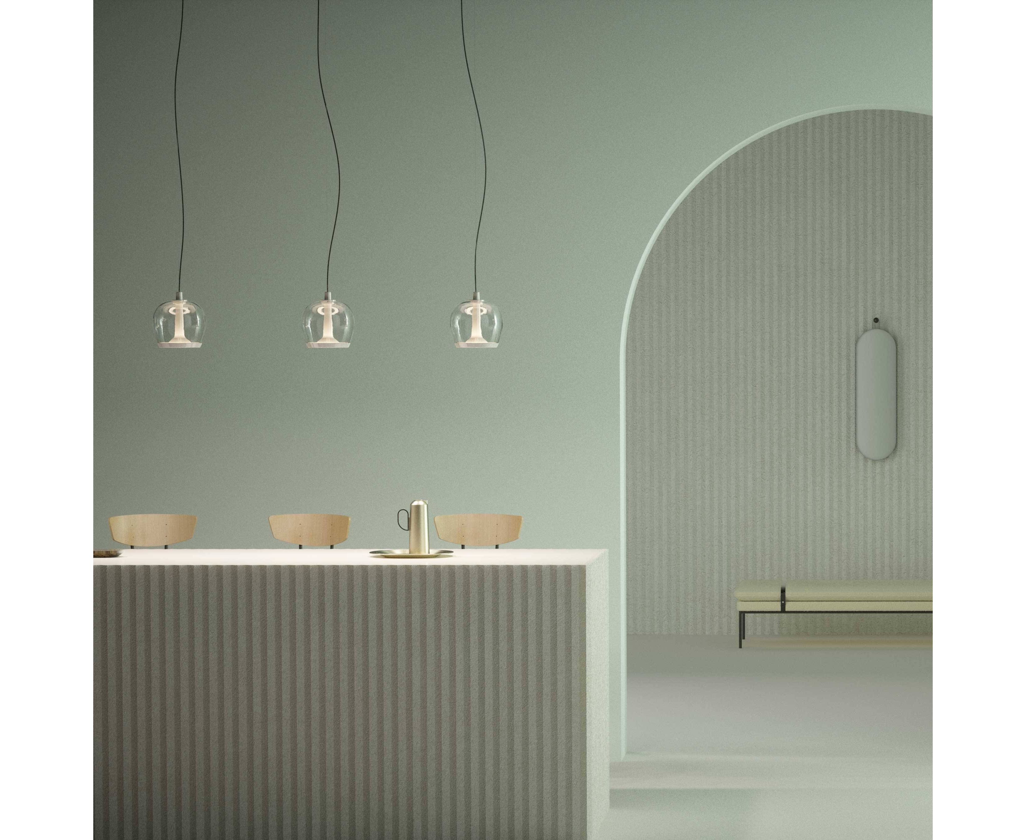 Aurelia был разработан для Leucos в 2021 году уважаемым Patrick Jouin. Полупрозрачный стеклянный корпус Aurelia в форме медузы плавает, пропуская космический следящий свет через прямой свет вниз по металлической воронке, обработанной вручную, в то время как скрытое непрямое светодиодное кольцо на вершине воронки освещает стеклянный диффузор ручной выдувки.