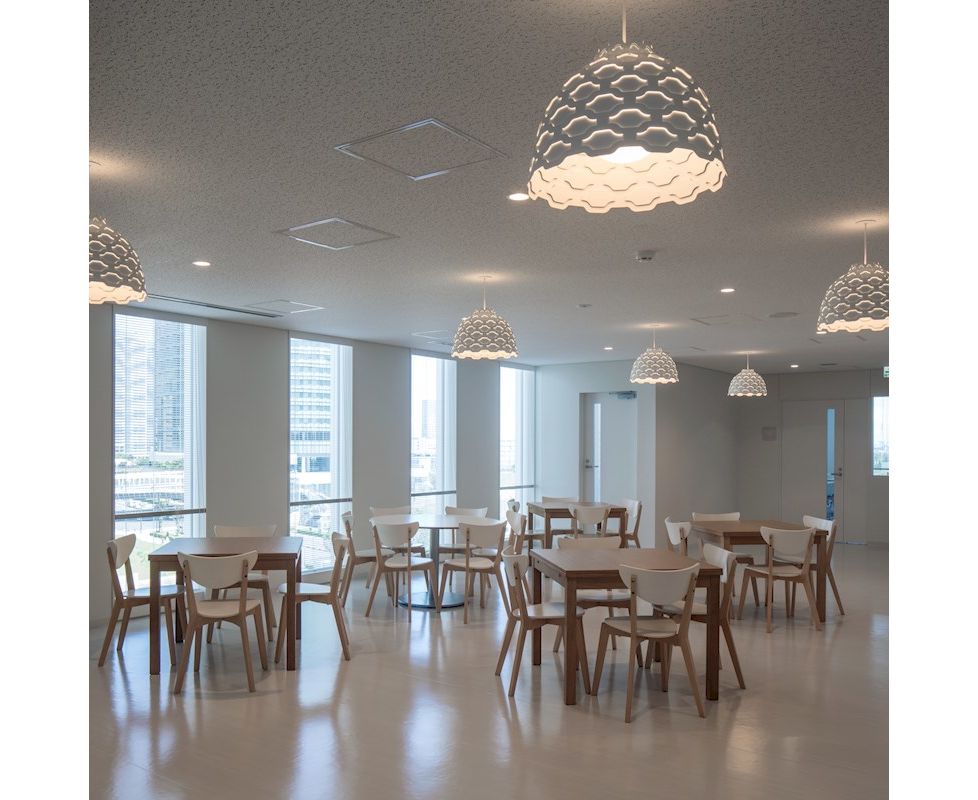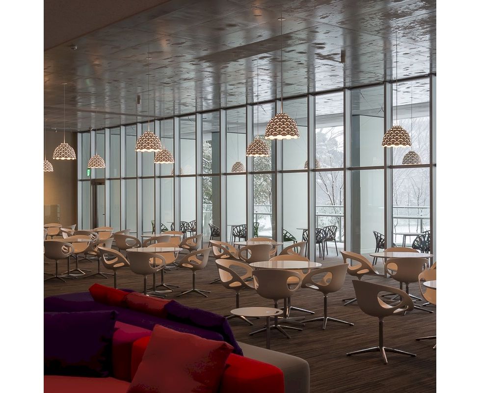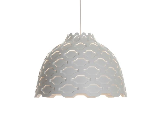 Светильник излучает в основном свет вниз. Перфорированный рисунок абажура обеспечивает мягкое освещение вокруг светильника. Между тем, перфорация помогает осветлить поверхность абажура декоративным способом, когда она включена, тем самым поддерживая контур светильника, независимо от того, включен он или нет. Источник света окружен опаловым рассеивателем, который гарантирует, что светильник 100% без бликов и что прибор подходит для нескольких типов источников света, обеспечивающих одинаковое распределение света и комфорт. И, наконец, форма диффузора позволяет получить прекрасный вид на светильник.