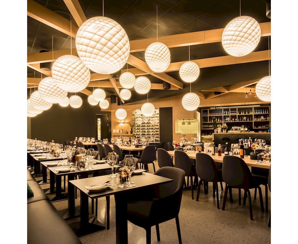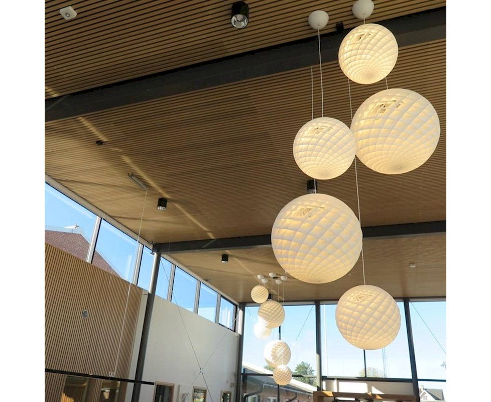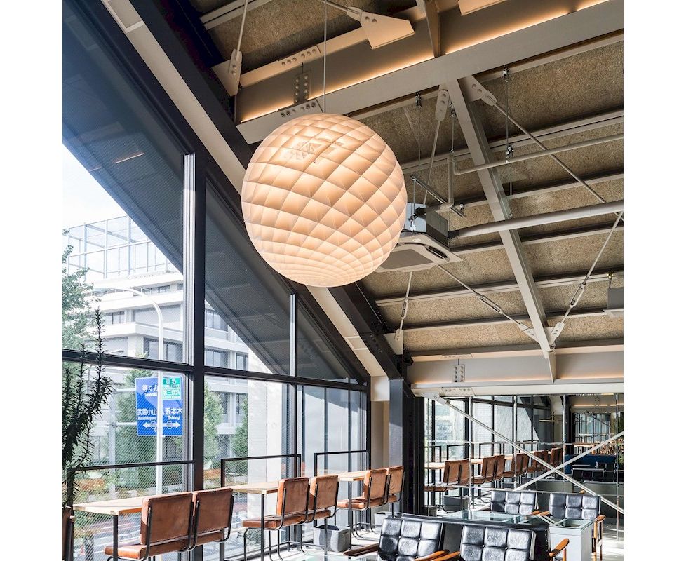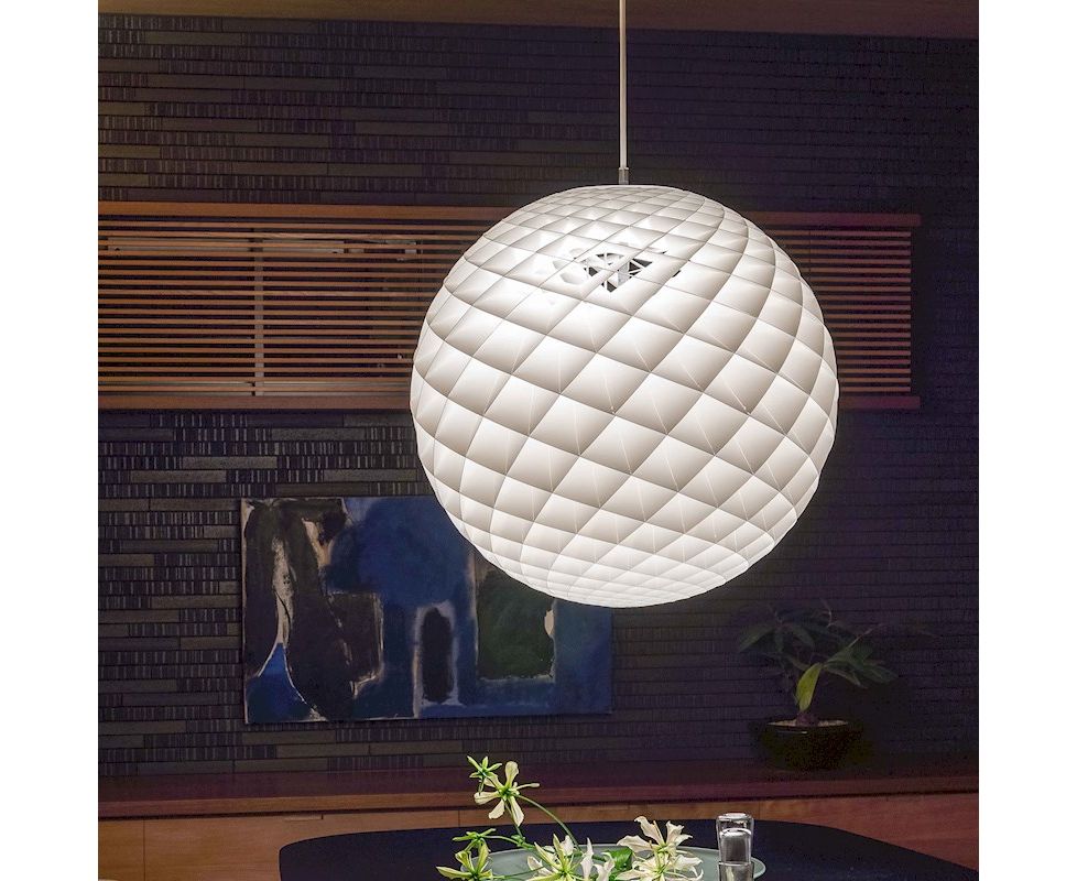 Подвесной светильник представляет собой светящуюся сферу, образованную маленькими ромбовидными ячейками. Каждая ячейка тщательно разработана для захвата света и защиты источника света от углов обзора выше 45 градусов. Каждая ячейка светится. Ниже 45 градусов поля открыты для прямого света вниз. Небольшое количество света также направляется вверх, чтобы освещать потолок.