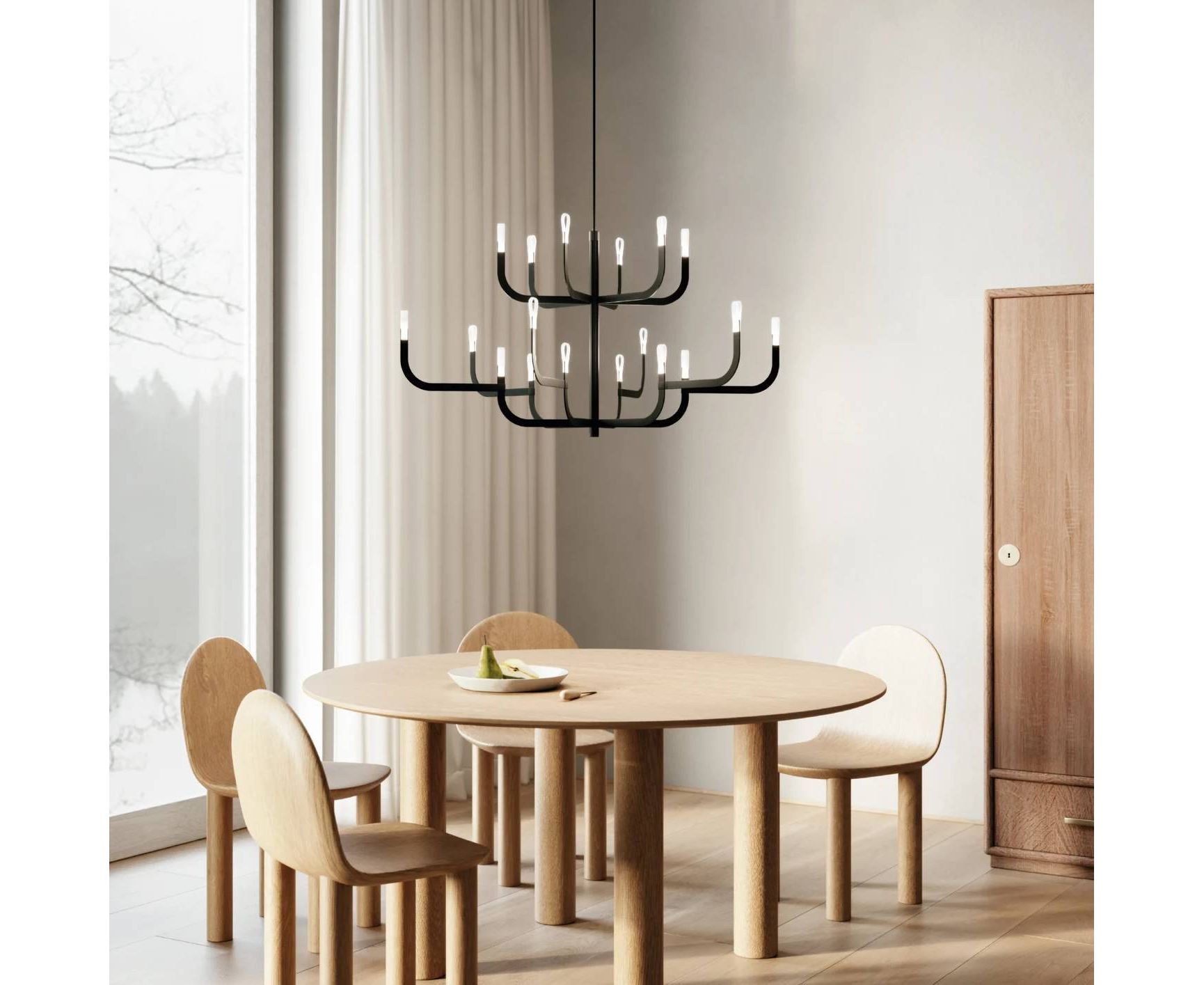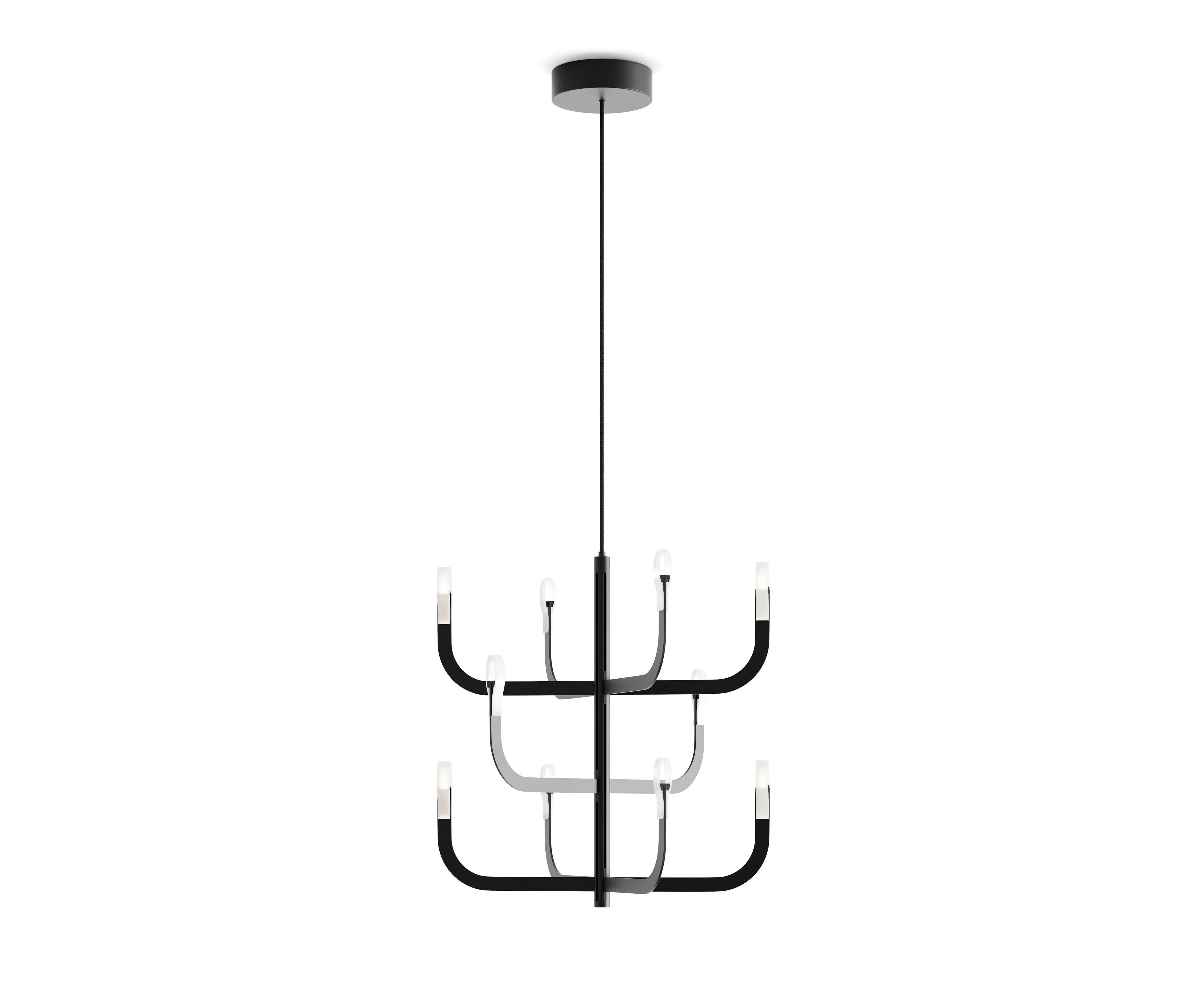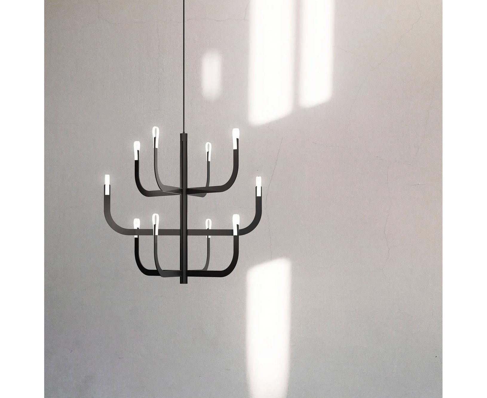 J-us — алюминиевая светодиодная люстра, представленная в виде оригинальной люстры с кронштейнами, в которой технологические инновации, исследования материалов и новые решения для электропроводности полностью скрыты от глаз. К центральной цилиндрической конструкции диаметром 30 мм можно прикрепить различные кронштейны люстры. Каркас выполнен из алюминия, кронштейны — из меди и стекловолокна, а диффузоры — из технополимера. Благодаря тонкому профилю и выразительным линиям люстра допускает множество различных конфигураций благодаря возможности создания нескольких уровней кронштейнов, расположенных на центральная конструкция с возможностью увеличения диаметра за счет присоединения второго кольца рычагов к внутреннему.