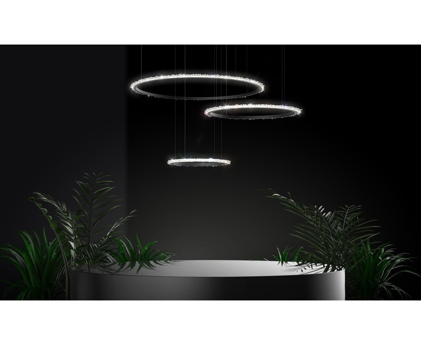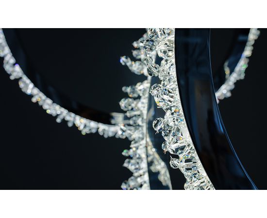 HALO назван в честь оптического явления, которое иногда можно наблюдать на небе, - мистического круга, охватывающего Солнце или Луну. Manooi Halo сочетает в себе современный высококачественный светодиод в качестве источника света, направленного наружу по кривой лампы, и самый роскошный кристалл марки Swarovski®. Каждый кристаллический элемент собран в нежные ветви, превращаясь в застывшие световые лучи, преломляя свет в тысячи разноцветных блесток.