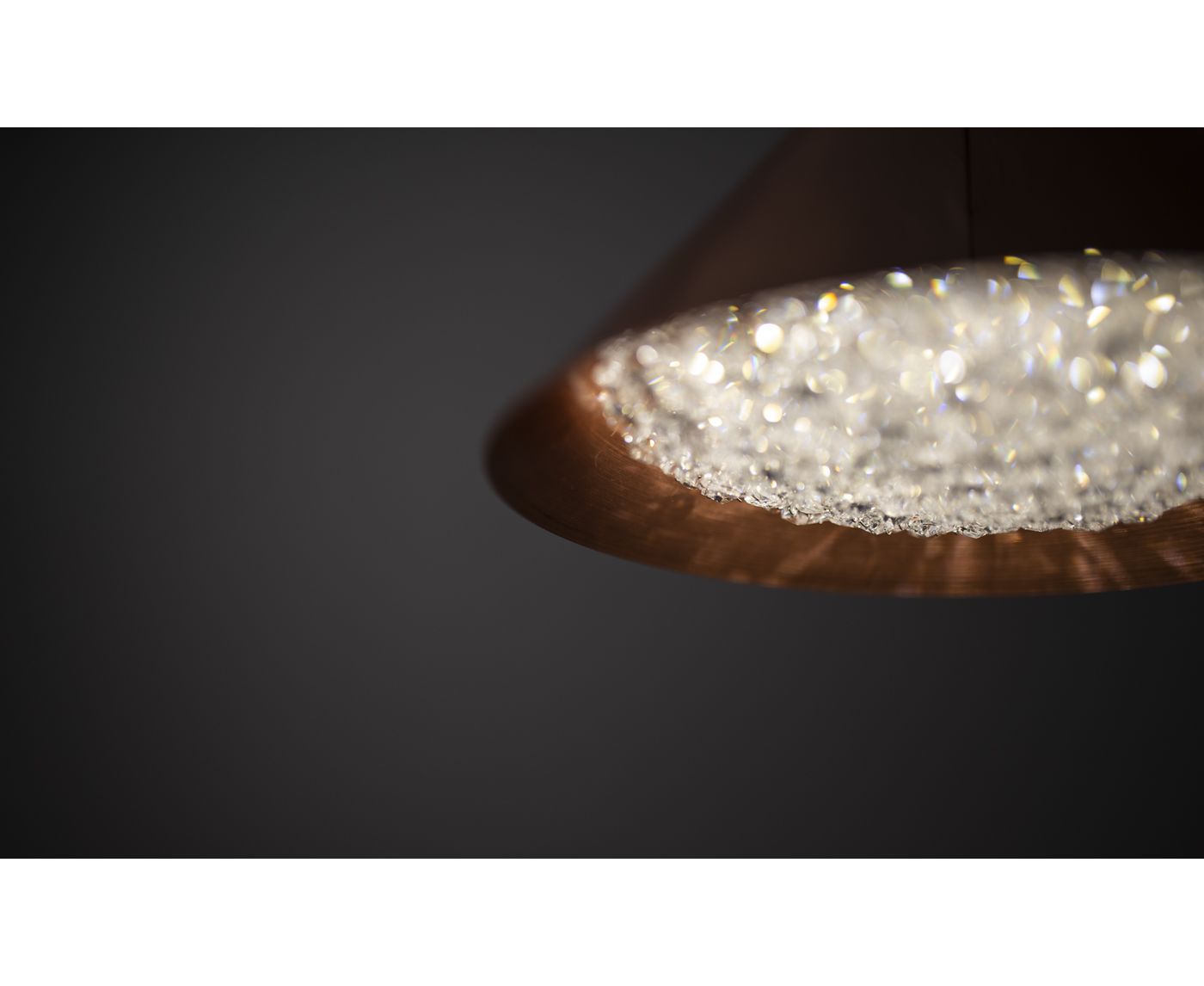 Origo Cone следует минималистской эстетике, представленной оригинальной подвеской Origo, и имеет новую форму - элегантный и изысканный конус. Благодаря медному абажуру и светодиодному источнику света он добавляет тепла и гламура интерьеру. Помимо меди вы можете заказать полированную или матовую хромированную отделку (черного или белого цвета). Origo предоставляет возможность бесконечного расположения различных кластеров, но также может использоваться в качестве одной подвески. Эта умело изготовленная вручную лампа украшена кристаллами высочайшего качества.