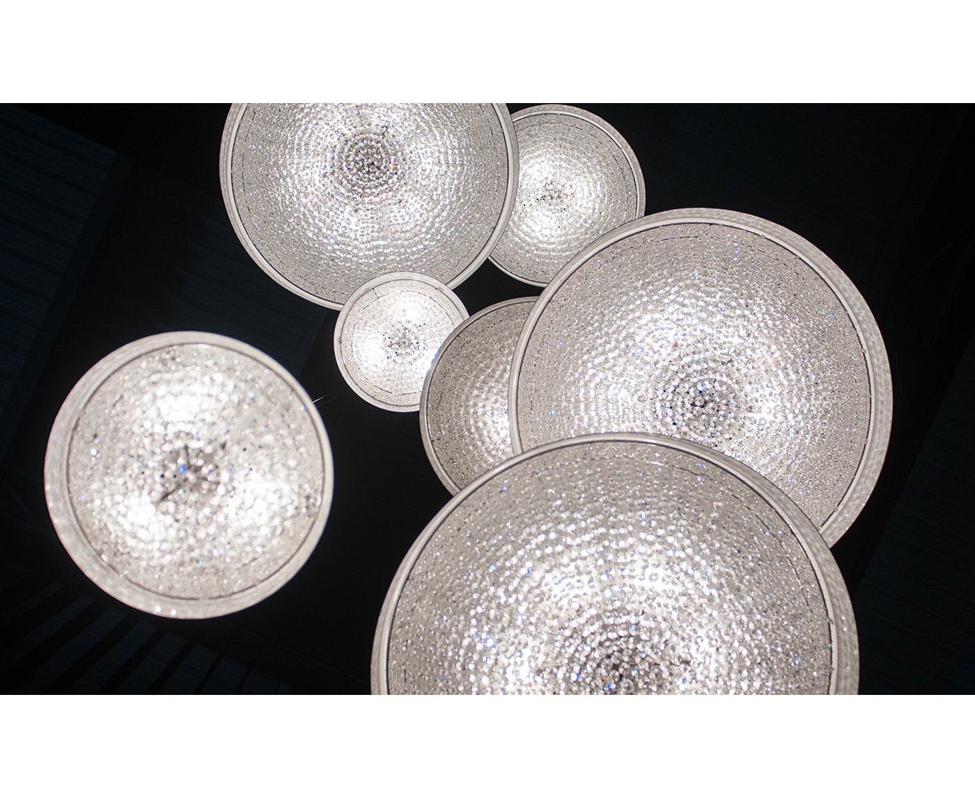 Включая множество кристаллов в круглом произведении искусства, TONDO расширяет Коллекцию Personal Universe. Здесь опыт Manooi в кристаллических цепочках сочетается с нержавеющей сталью и алюминием, что создает потрясающий эффект. Доступен в трех версиях; Будучи торшером, настольной лампой и круглой люстрой, Tondo является лучшим выбором для современных лофтов и бутик-отелей.