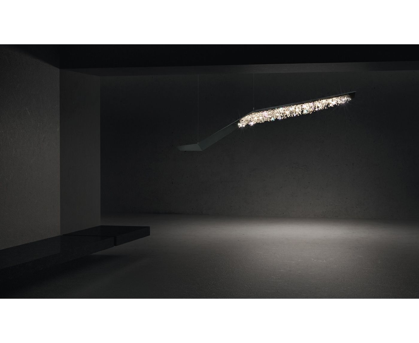 Вид падающей звезды очаровывает зрителя, и WISSH, символизирующий метеор, проникающий в нашу атмосферу и освещающий летнюю ночь, очаровывает точно так же. Воздушный и изящный дизайн, подчеркнутый утонченной черной структурой со сверкающими лучами хрустального сияния - модель Wissh привносит динамичность и стиль в современный интерьер. Будучи динамичным и великолепным образцом архитектуры, Wissh нужно пространство для жизни: его обычно устанавливают в холлах отеля или на стойках регистрации.