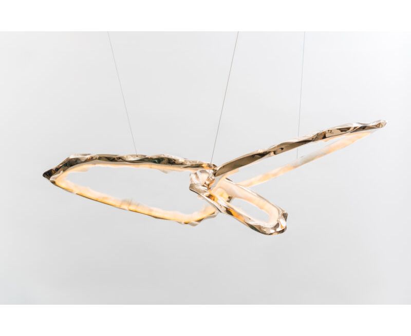Новейшая группа дизайнов освещения от Haase, серия Circlet, использует свежие и инновационные дизайнерские техники, объединяя чувственные формы с явно абстрактными модернистскими мотивами. Каждый граненый асимметричный компонент создан для динамического улавливания и отражения света. Кольца в форме оживленных волн или столбов дыма отлиты из полированной бронзы и украшены вырезанным вручную ониксом, рассеивающим теплое сияние скрытых светодиодов. Сочетая мастерство традиционных техник лепки с современным подходом к дизайну, основанным на материалах, Хаазе - один из немногих художников, работающих сегодня, создавая уникальные работы из бронзы. Вместо того, чтобы использовать процесс литья в качестве механизма для создания множественных фигур, каждая из его бронзовых и ониксовых световых скульптур полностью уникальна.