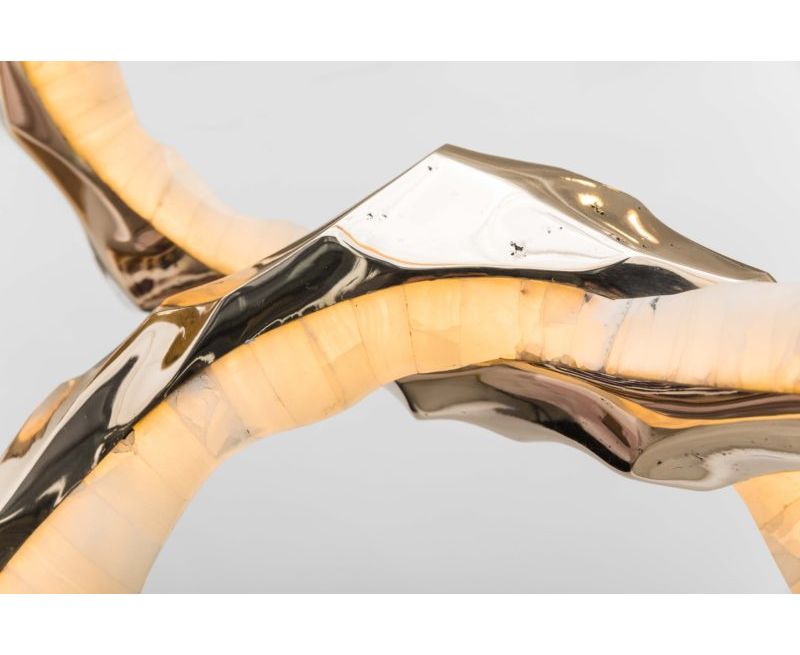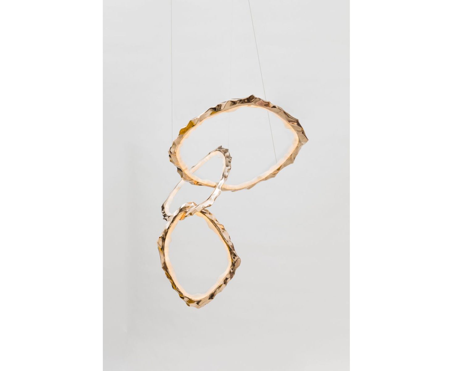 Последняя группа дизайнов освещения от Haase, серия Circlet, использует свежие и инновационные дизайнерские техники, объединяя чувственные формы с явно абстрактными модернистскими мотивами. Каждый граненый асимметричный компонент создан для динамического улавливания и отражения света. Кольца в форме оживленных волн или столбов дыма отлиты из полированной бронзы и украшены вырезанным вручную ониксом, рассеивающим теплое сияние скрытых светодиодов.