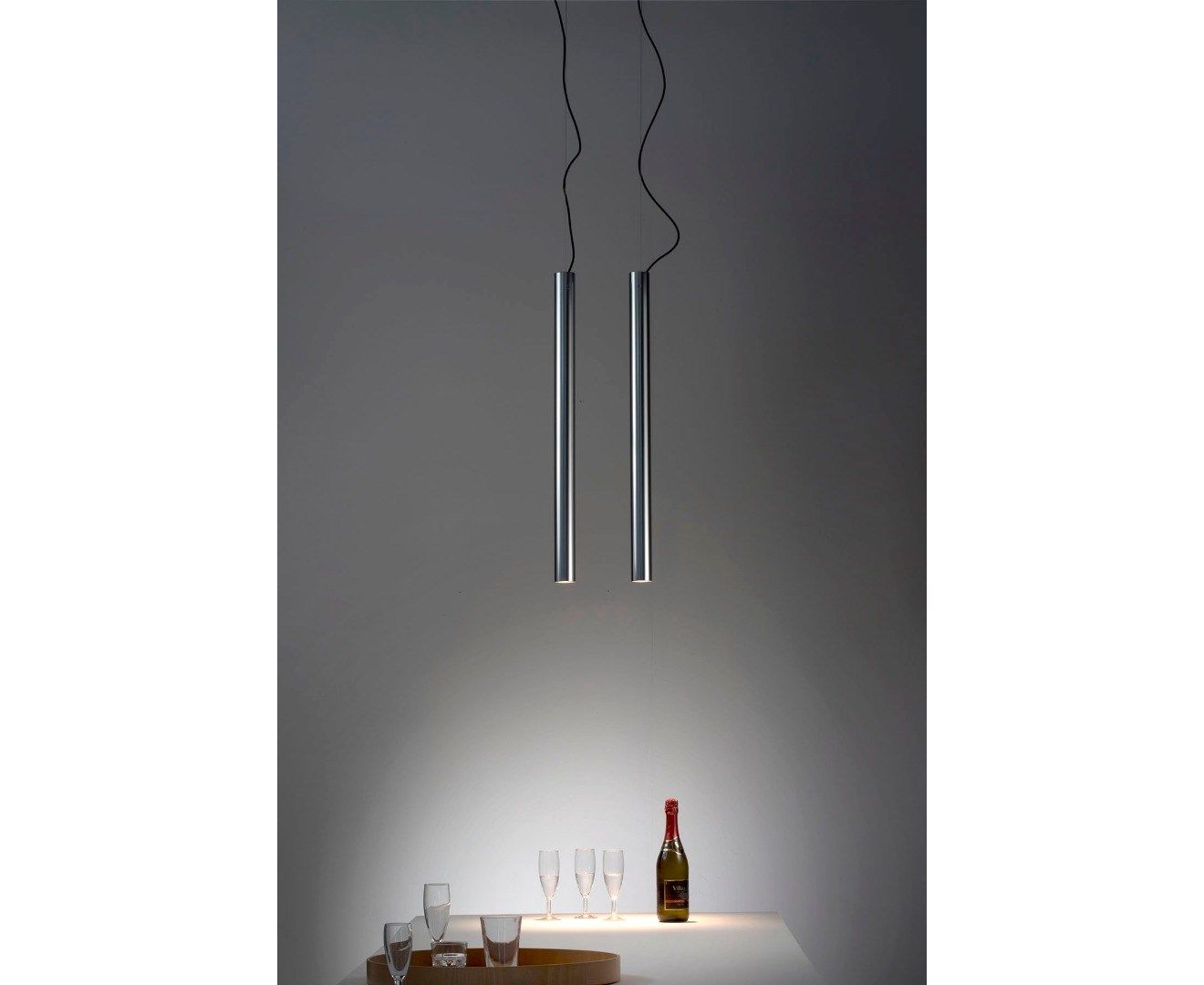 Серия трубчатых элементов из метакрилата и алюминия, свисающих с потолка. Игра света и отражений характеризует окружающую среду, создавая новые архитектурные пейзажи. Осветительные решения как для жилых, так и для общественных помещений. Подвесной светильник, прямой свет. Трубчатая конструкция из полированного алюминия. Электронный драйвер в алюминиевой трубке.