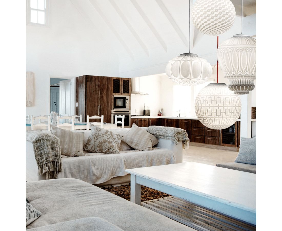 Выдувные декорированные стеклянные подвески, коллекция включает в себя отдельные подвески, кластер и настольную лампу. Свет проецируется прямо и через стеклянный экран. Arabesque доступен в отделке V2553 глянцевый белый.