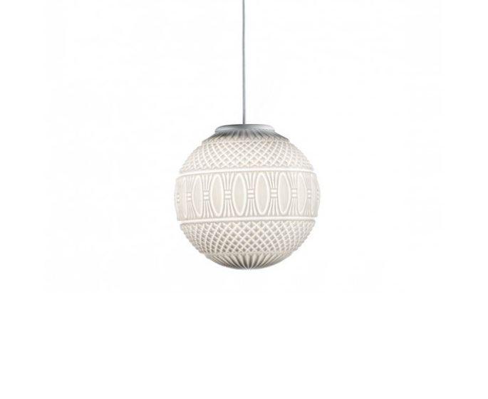 Выдувные декорированные стеклянные подвески, коллекция включает в себя отдельные подвески, кластер и настольную лампу. Свет проецируется прямо и через стеклянный экран. Arabesque доступен в отделке V2553 глянцевый белый.