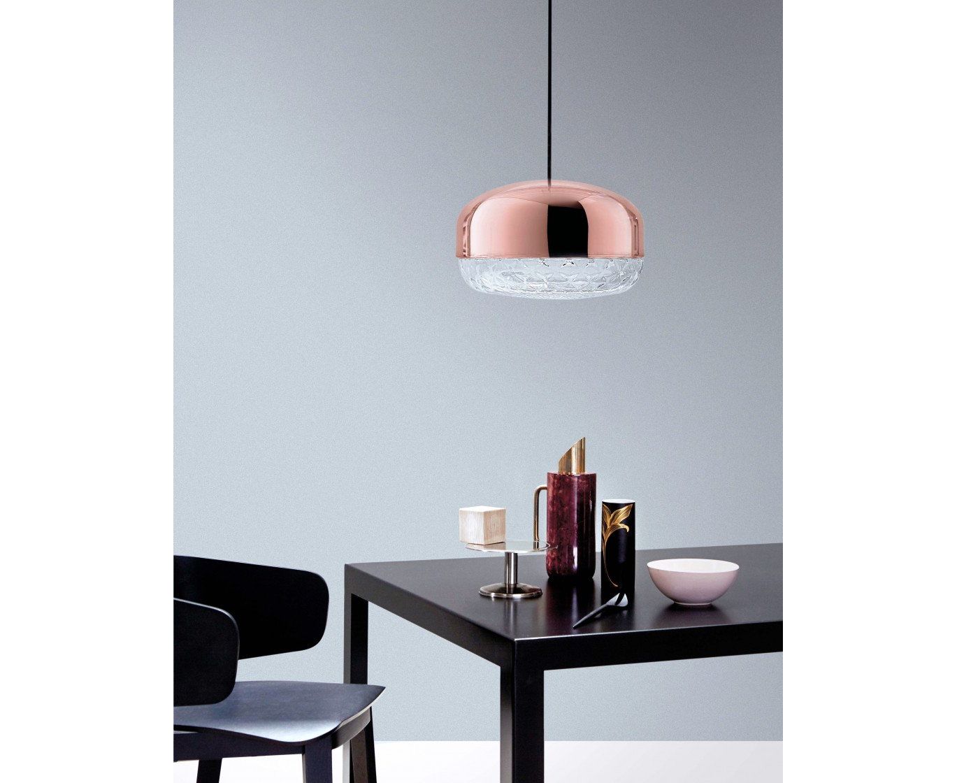 Коллекция светильников Balloton исходит из повторной интерпретации классической техники для выдувания стекла, типичной венецианской традиции, из которой продукт берет имя. С их основными формами три версии оцениваются как сингулярно, так и в больших композициях, как большая люстра. Свет, пересекающий текстуру диффузора, создает соблазнительную атмосферу, сильно определяющую место, в котором используется. Эти лампы доступны в глянцевой меди (V2806) или матовой темной меди внутри (V2810)