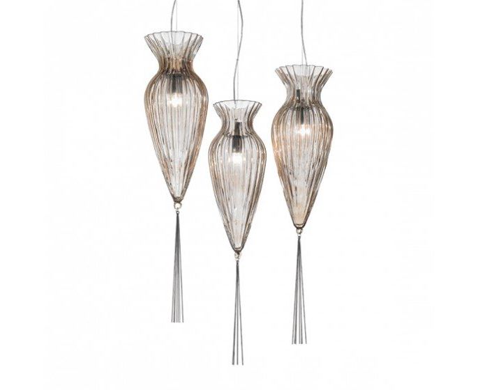 Подвесной светильник с одной лампочкой, выполненный вручную из выдувного стекла по традиции мастеров стекла мурано. Лампа комплектуется металлическими кисточками, которые делают ее гладкой и стройной.