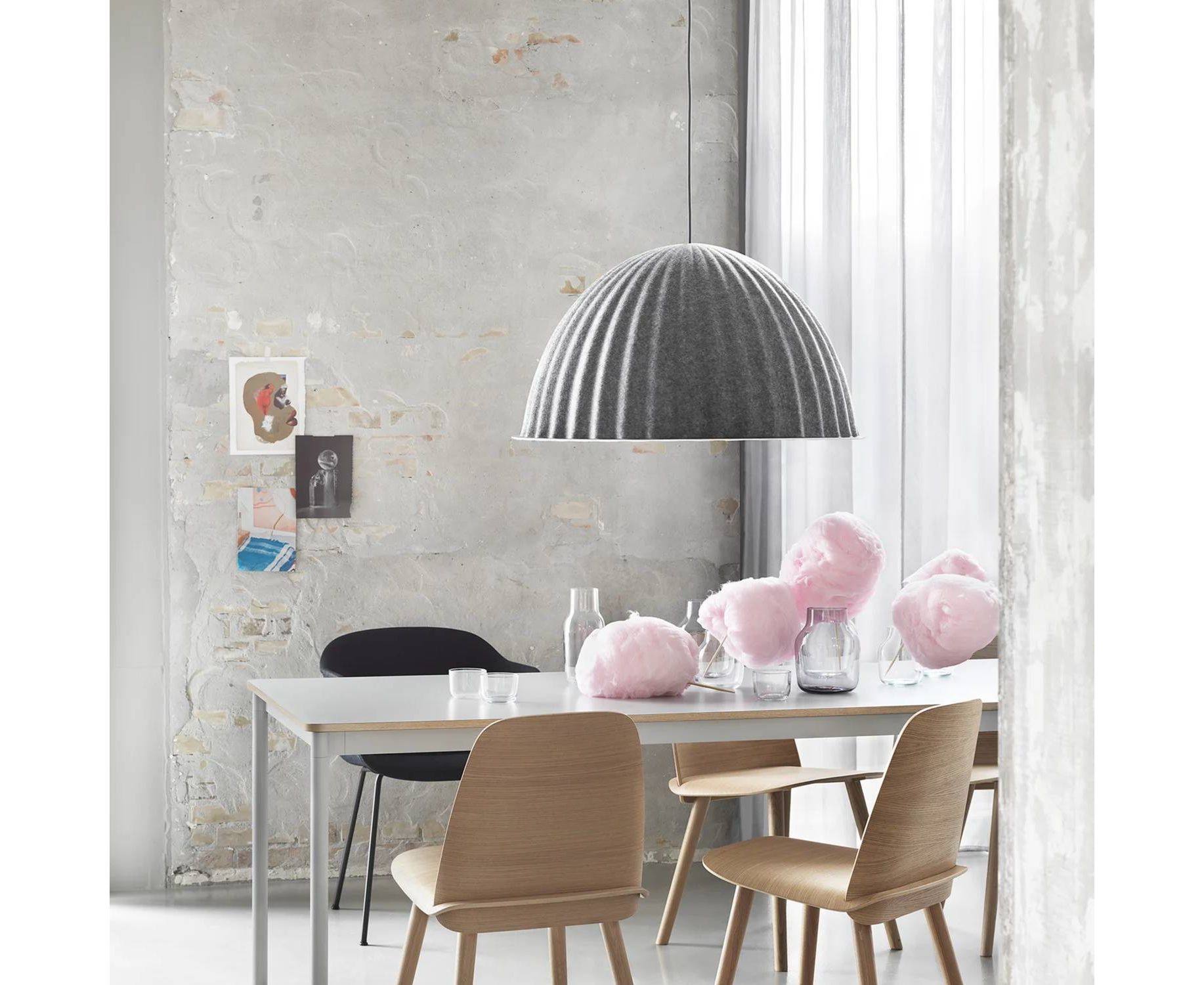 Подвесная лампа Under, изготовленная из материала, в котором используется до 60 % переработанных пластиковых волокон, не только придает любому пространству тактильное и современное выражение, но и улучшает акустику помещения благодаря мягкому оттенку в сочетании с графическими линиями и тонкой цветовой палитрой.