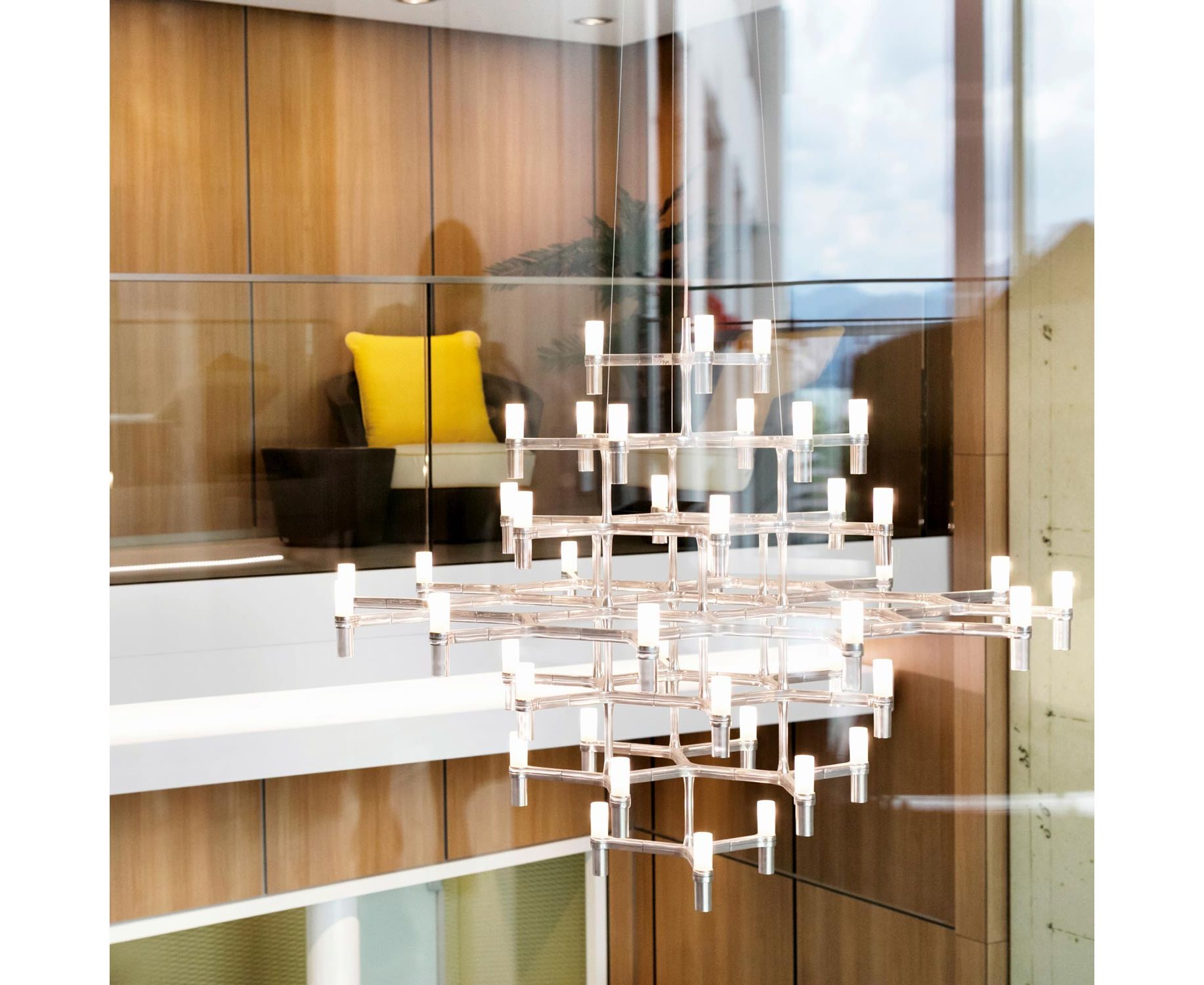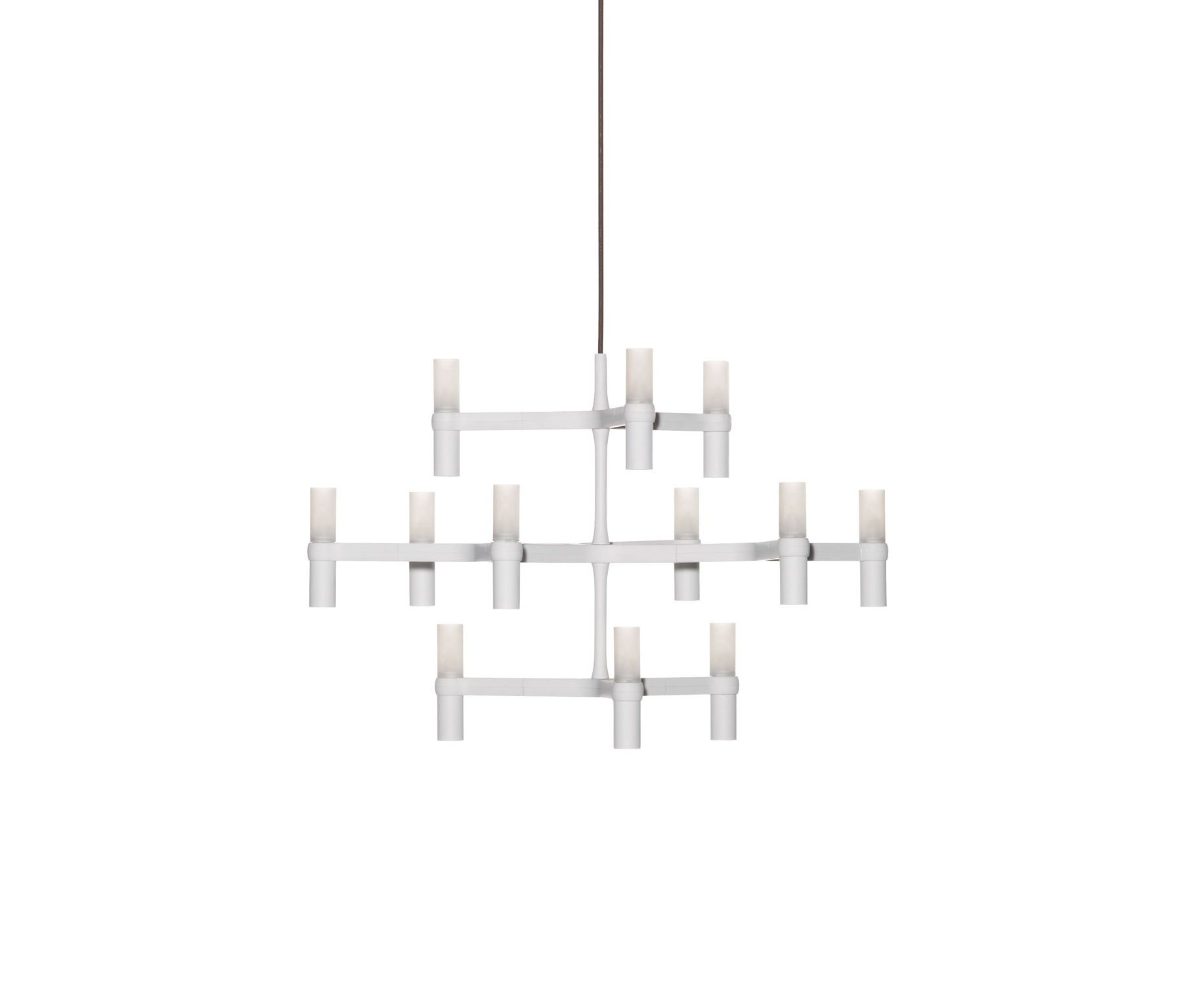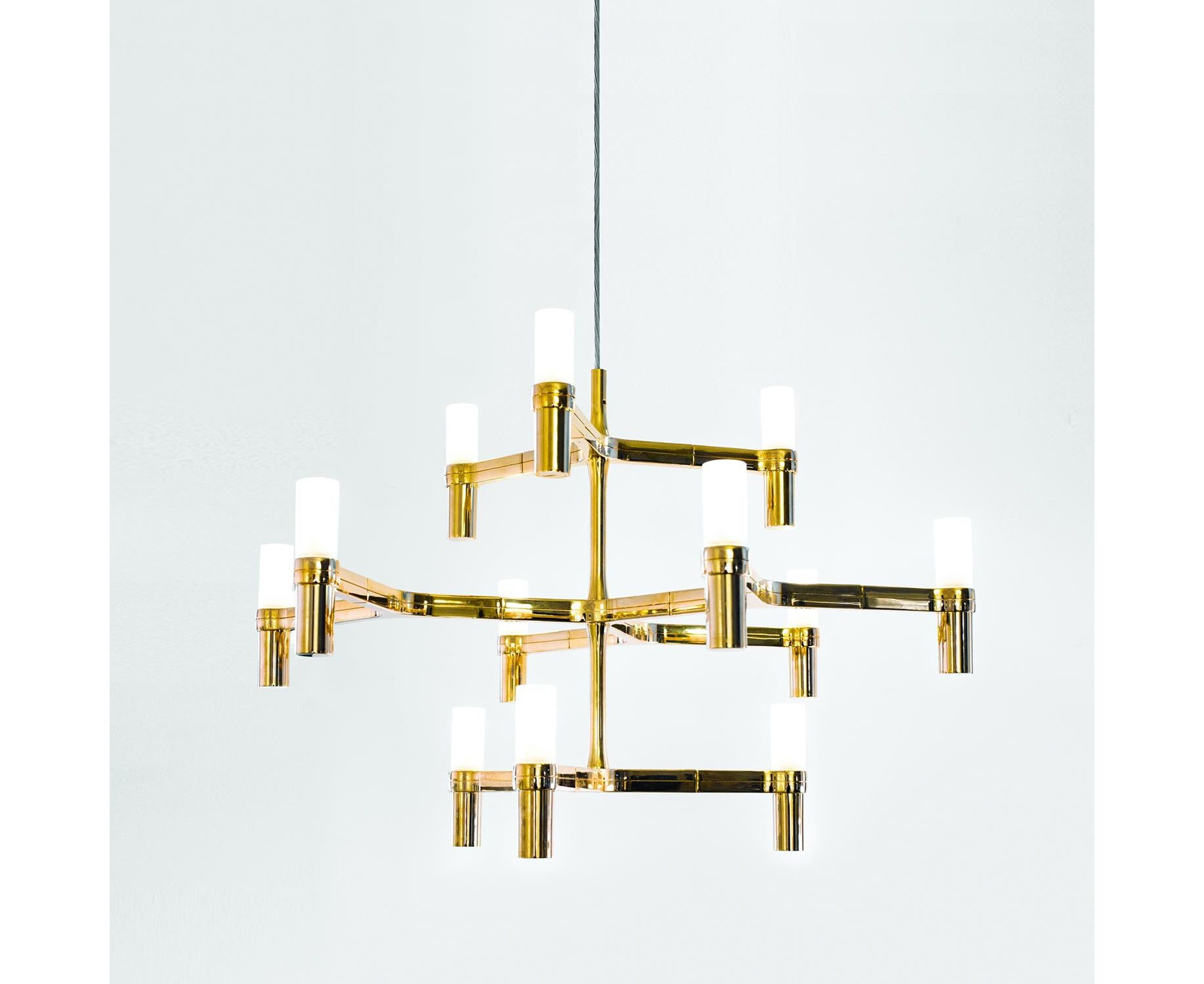 Подвесные люстры с модульной структурой из диффузоров из литого алюминия и стекла с пескоструйной обработкой. Конструкция из алюминия, отполированного вручную, покрытого глянцевым золотом или окрашенного в матовый белый, черный матовый или золотой цвет. Доступен комплект NEMO LED G9. Рассеянный свет. Двойной переключатель для версий Summa и Magnum. Прозрачный кабель. Красный кабель по запросу.