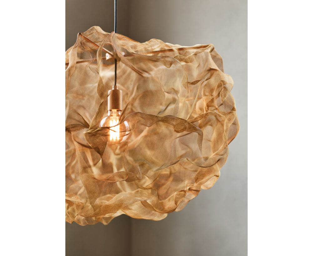 Блестящая латунная сетка была отправной точкой для этой подвесной лампы, которую дизайнер художественно превратил в светящееся облако огня. Как только свет выключается, «огонь» исчезает, создавая облачную тень. Высокая температура родилась из экспериментов дизайнера со сталкивающимися материалами, и вдохновением, чтобы создать большой подвесной свет, отличающийся контрастами. Лампа загорается в одну минуту, а затем - становится спокойной, создавая привлекательные черты в любом режиме. Какой бы режим вы ни выбрали, Heat - это динамическая лампа, которая наполняет интерьер творчеством и фантазией.