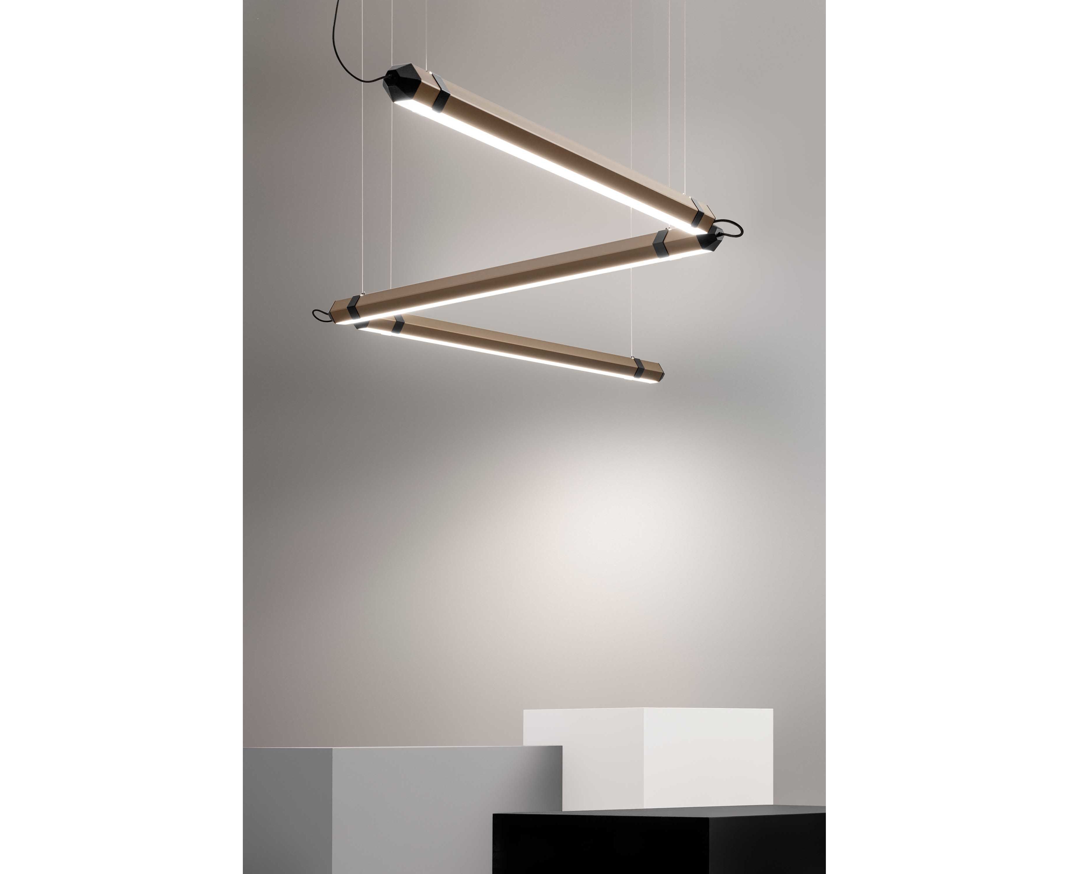 Zigo Zago - модульная подвесная лампа с шестигранным сечением. Zigo Zago спроектирован так, чтобы его можно было легко составлять благодаря соединению, которое соединяет отдельные модули, создавая идеальную лампу для любого пространства. Система Zigo Zago комплектуется гармоничными стальными подвесными ремнями для максимальной приспособляемости при установке.