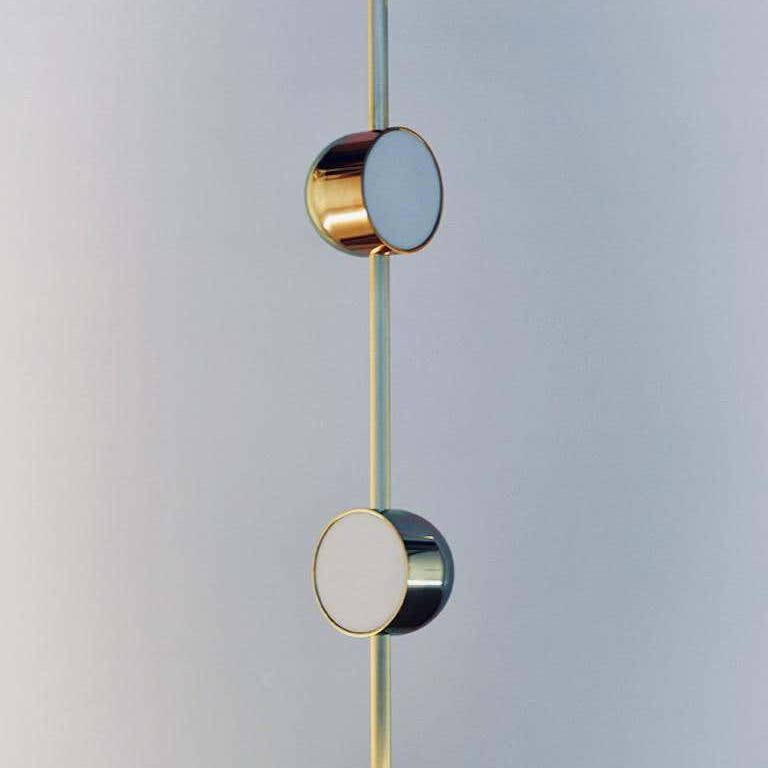 Dia - это скульптурная люстра, вдохновленная темой сопоставленных мелодических линий. Каждый кадр (или мелодия) свернут вручную со всеми соединениями, дискретно скрытыми внутри круглого источника света. Эти светодиодные источники света могут быть сочленены для угла окружающего света в желаемых направлениях. Dia черпает вдохновение в сложности и хрупкости природы. Эта скульптурная люстра очаровывает глаз в равной степени очарованием и причудливостью.