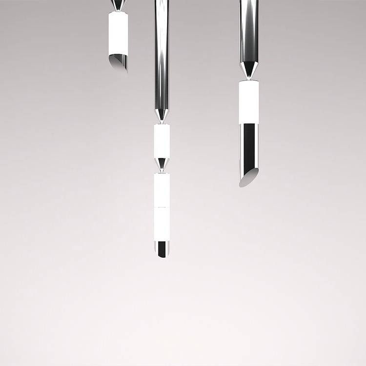 Подобно сталактитам, силуэт Gwen играет такую же важную роль в восприятии, как и форма самого объекта. Тонкие асимметричные формы позволяют изделию принимать различные формы под любым углом. Функциональный светодиодный источник света мягко рассеивается белым стеклом, контрастируя с отполированными вручную секциями из полудрагоценного металла. Gwen может выступать как в качестве самостоятельного одиночного светильника, так и быть сгруппирована в композиции для большего визуального эффекта.
