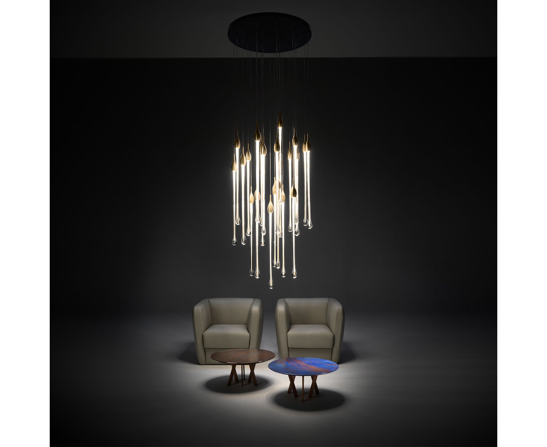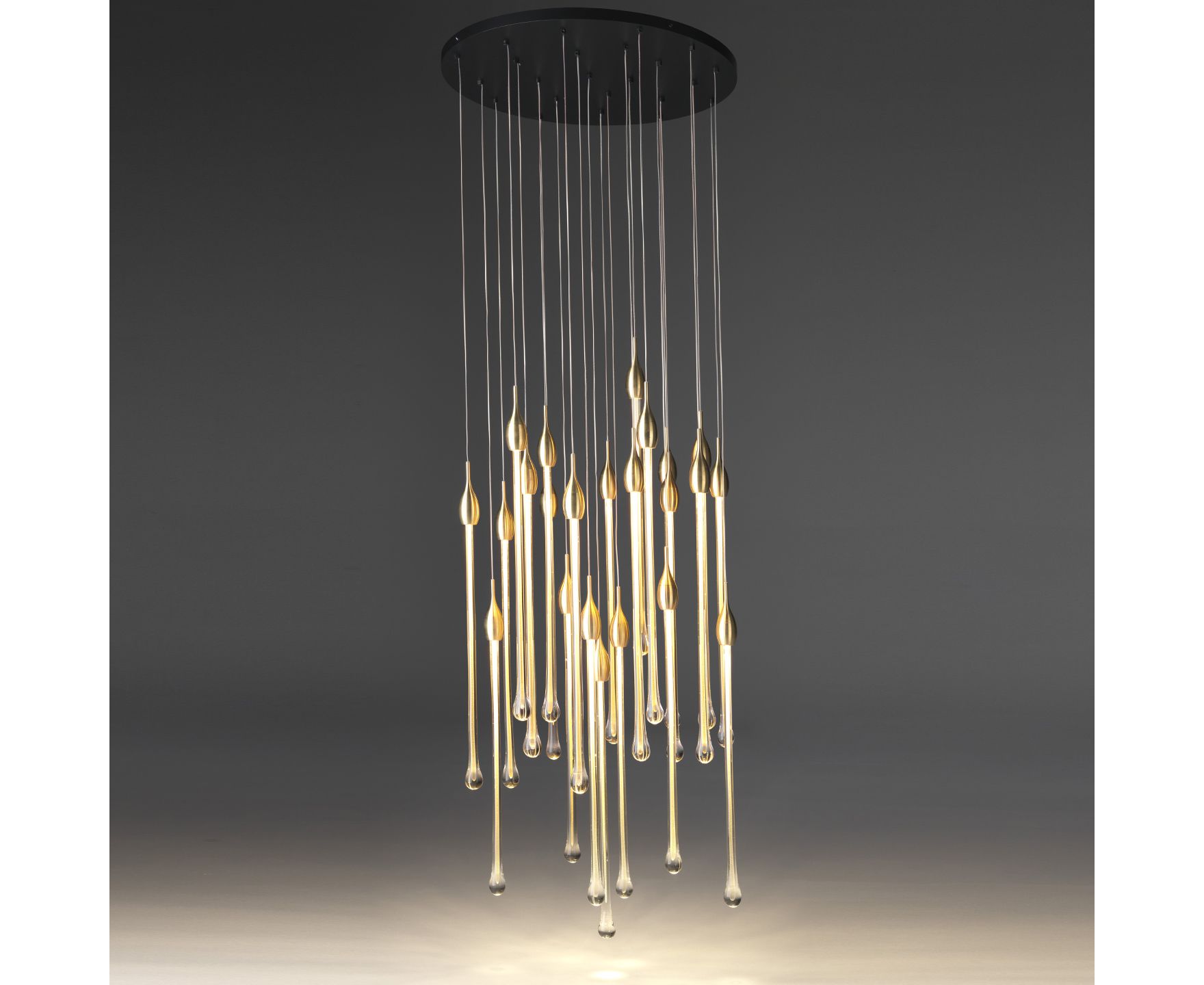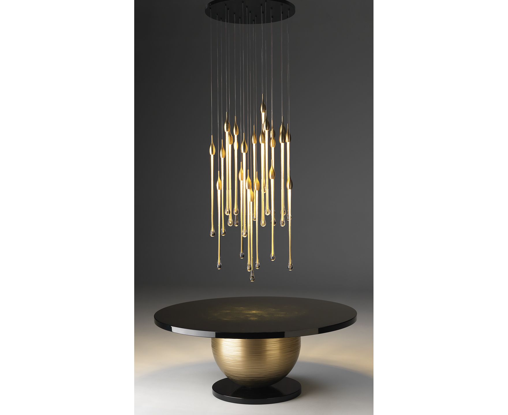 Allure - это изысканная лампа, полностью изготовленная вручную в соответствии с традиционными методами мурано. Капли цвета венецианского хрусталя (22 капли и 5 ламп для овальной версии и 23 капли и 6 ламп для круглой версии), расположенные на разной высоте, выполнены из твердого муранского стекла с драгоценным листом золота или серебра 24 карата. В золотой отделке верхняя крышка изготовлена из латуни; в то время как в серебряной отделке она сделана из алюминия и включает в себя современную светодиодную опору. Верхняя пластина прикреплена к стальной пластине, окрашенной в черный или белый цвет. Светильник доступен в двух версиях: овальной и круглой.